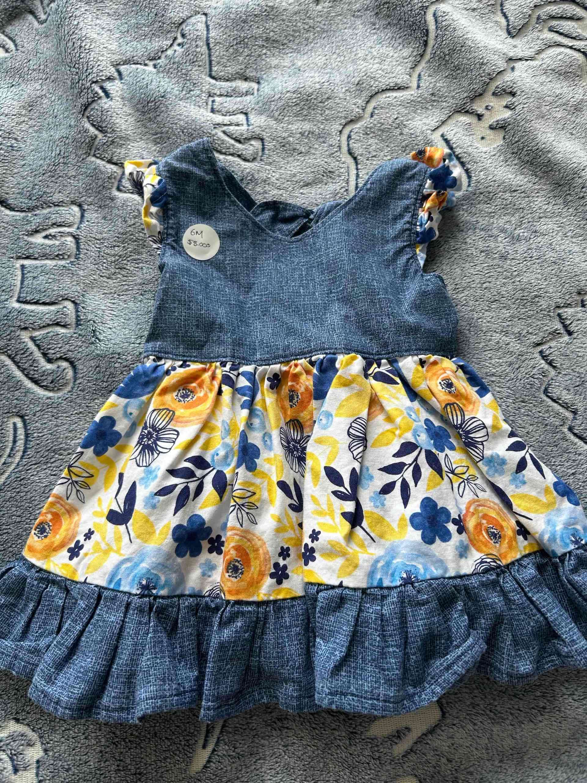 Vestido para bebé con diseño floral y parte superior de denim, ideal para la primavera. 6M