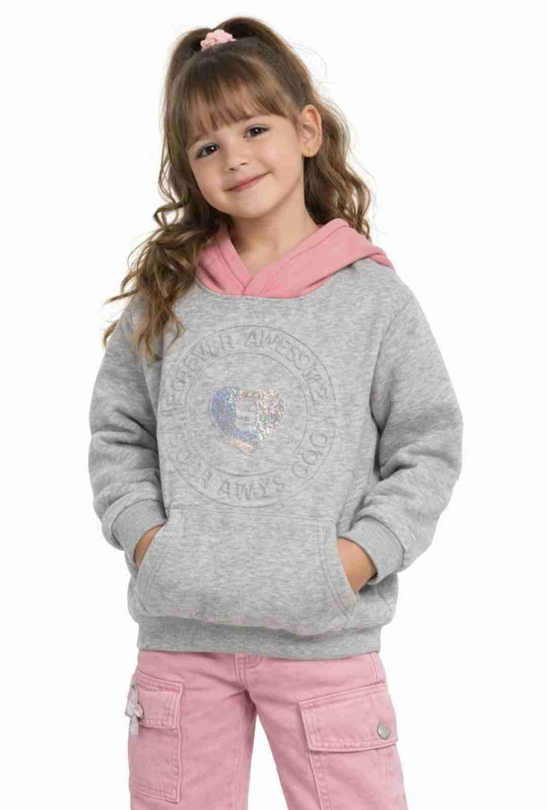 Cómodo polerón gris con capucha rosa, perfecto para días fríos. En buen estado, ideal para el colegio o uso diario.
