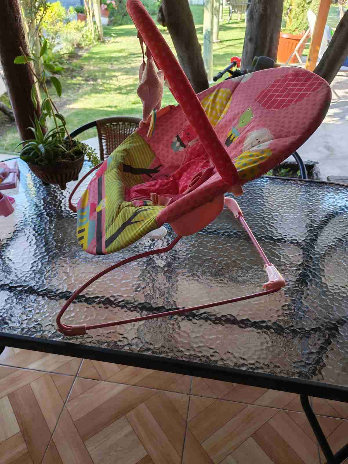 Cómoda silla mecedora infantil con diseño colorido. Ideal para entretener y calmar al bebé. Buen estado general.