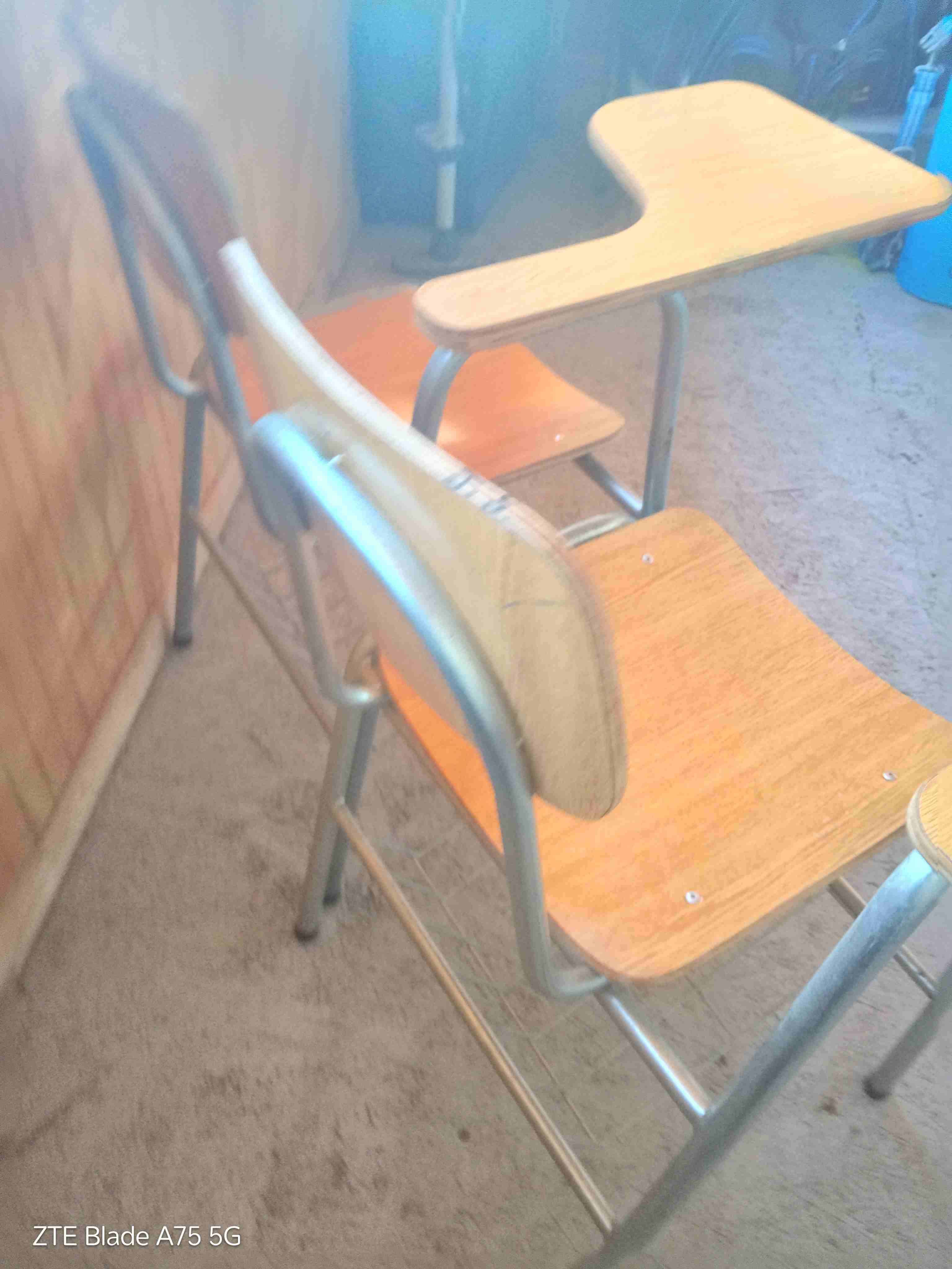 Silla escolar de madera y metal con paleta integrada. Ideal para estudiantes. Se vende las 2 por $18000
