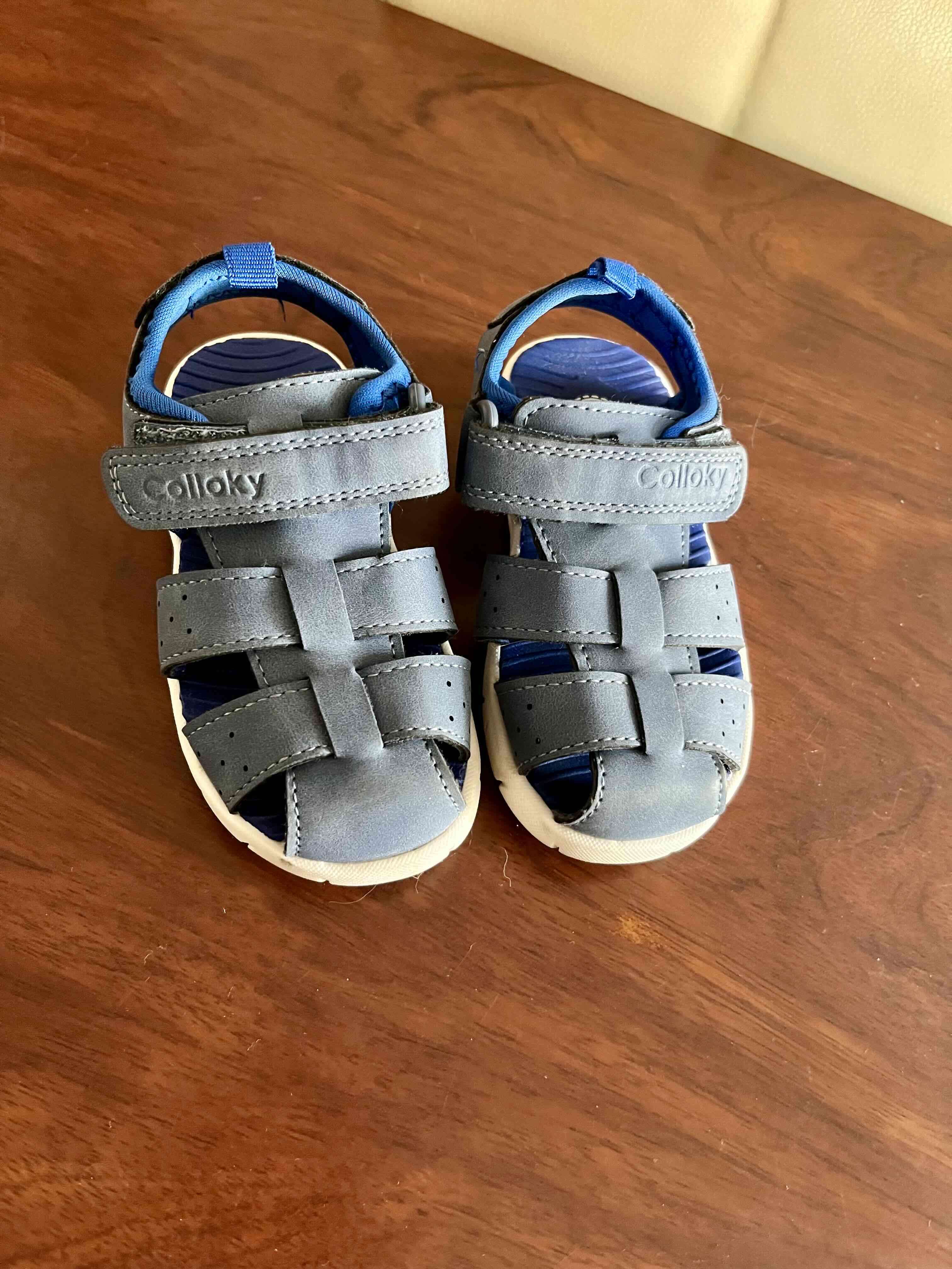 Sandalias azules para niño, cómodas y seguras. Ideal para el verano. Buen estado. Talla 22, solo 3 posturas, sin detalles