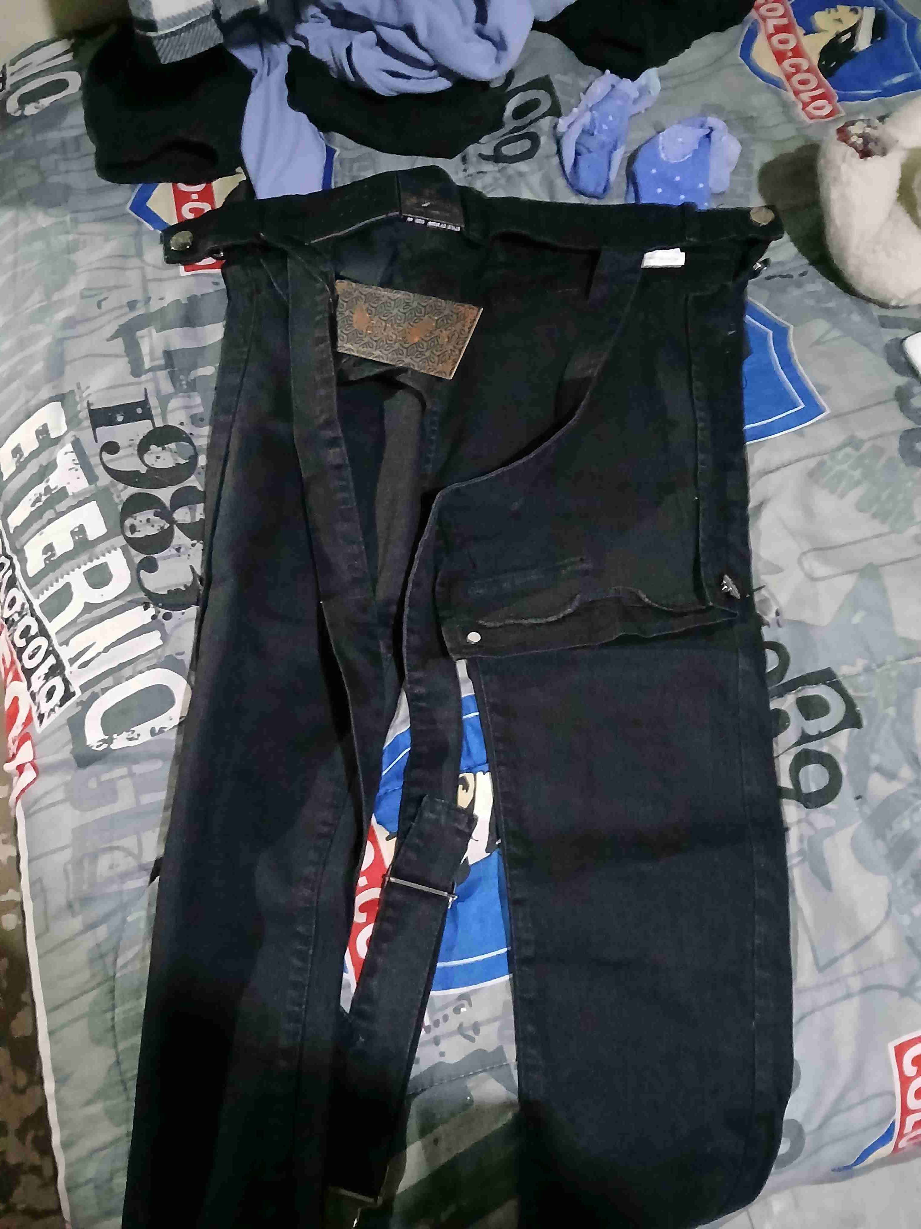 Jeans negros con tirantes incorporados, estilo casual. En buen estado, ideales para un look relajado.