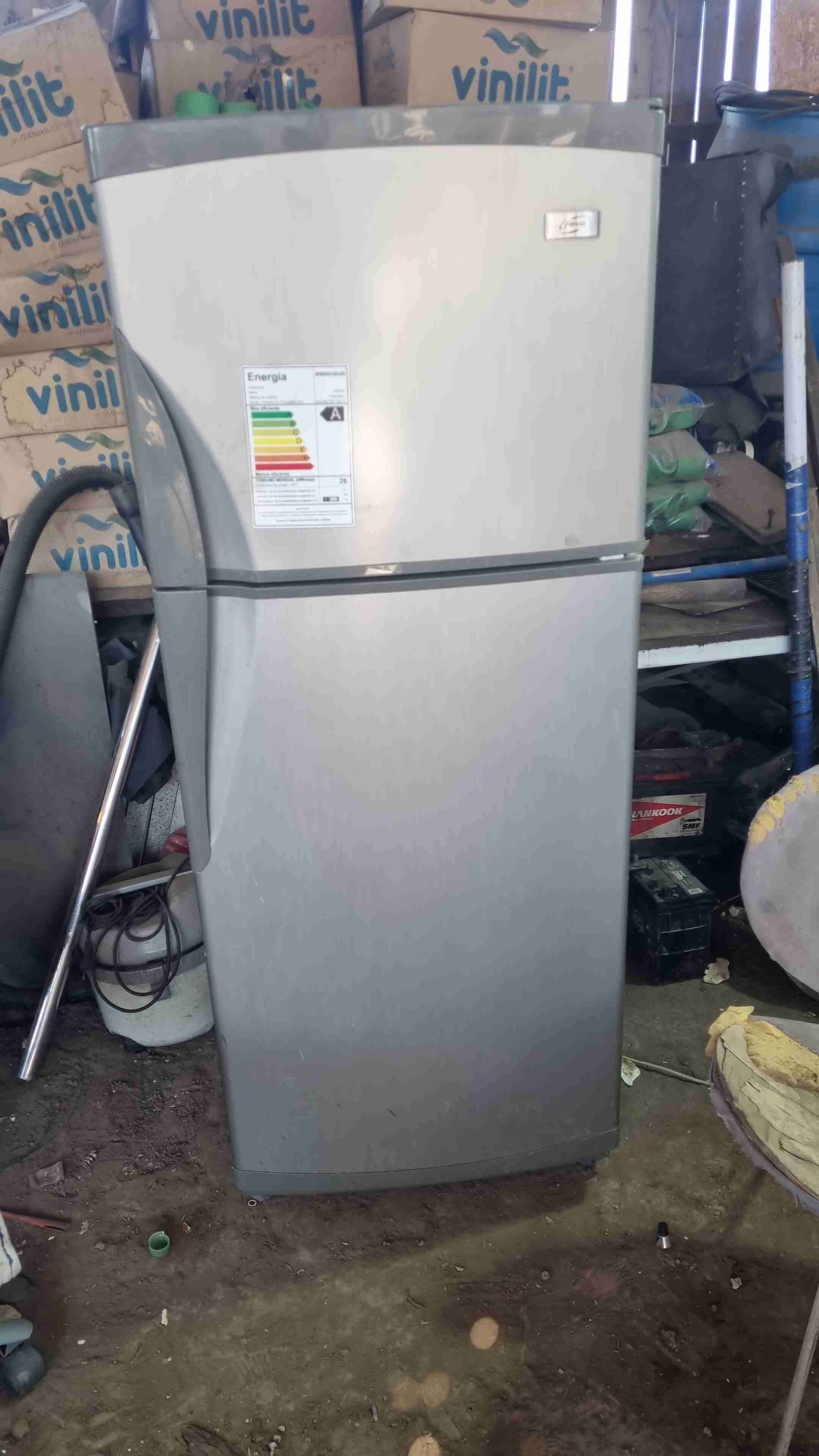 Refrigerador de dos puertas en buen estado, color gris. Ideal para mantener tus alimentos frescos.