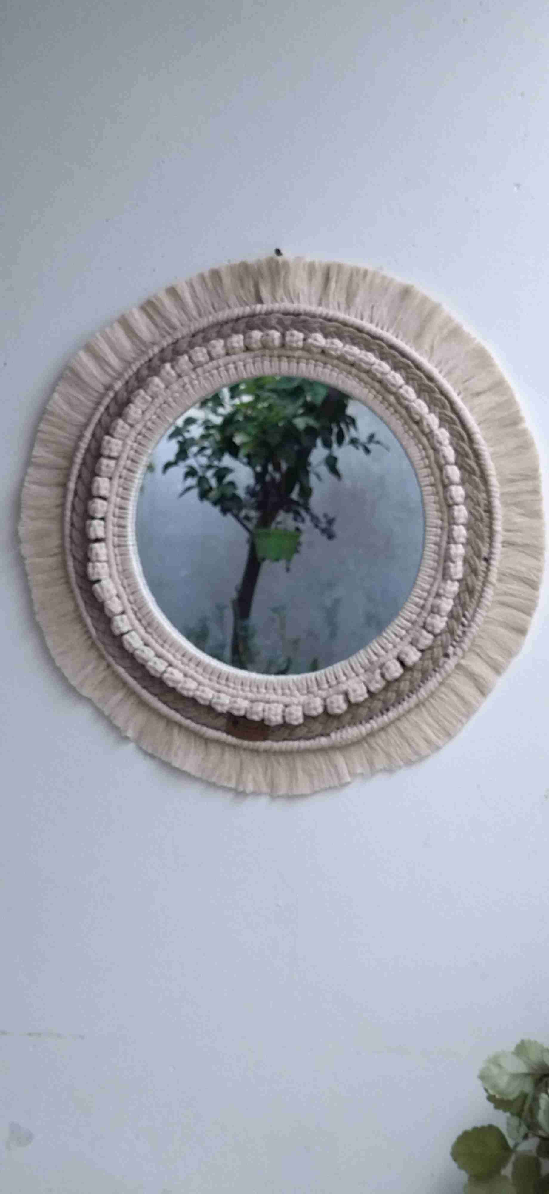 Espejo redondo con un elegante marco de macramé. Perfecto para la decoración de interiores. 30 cm. El espejo