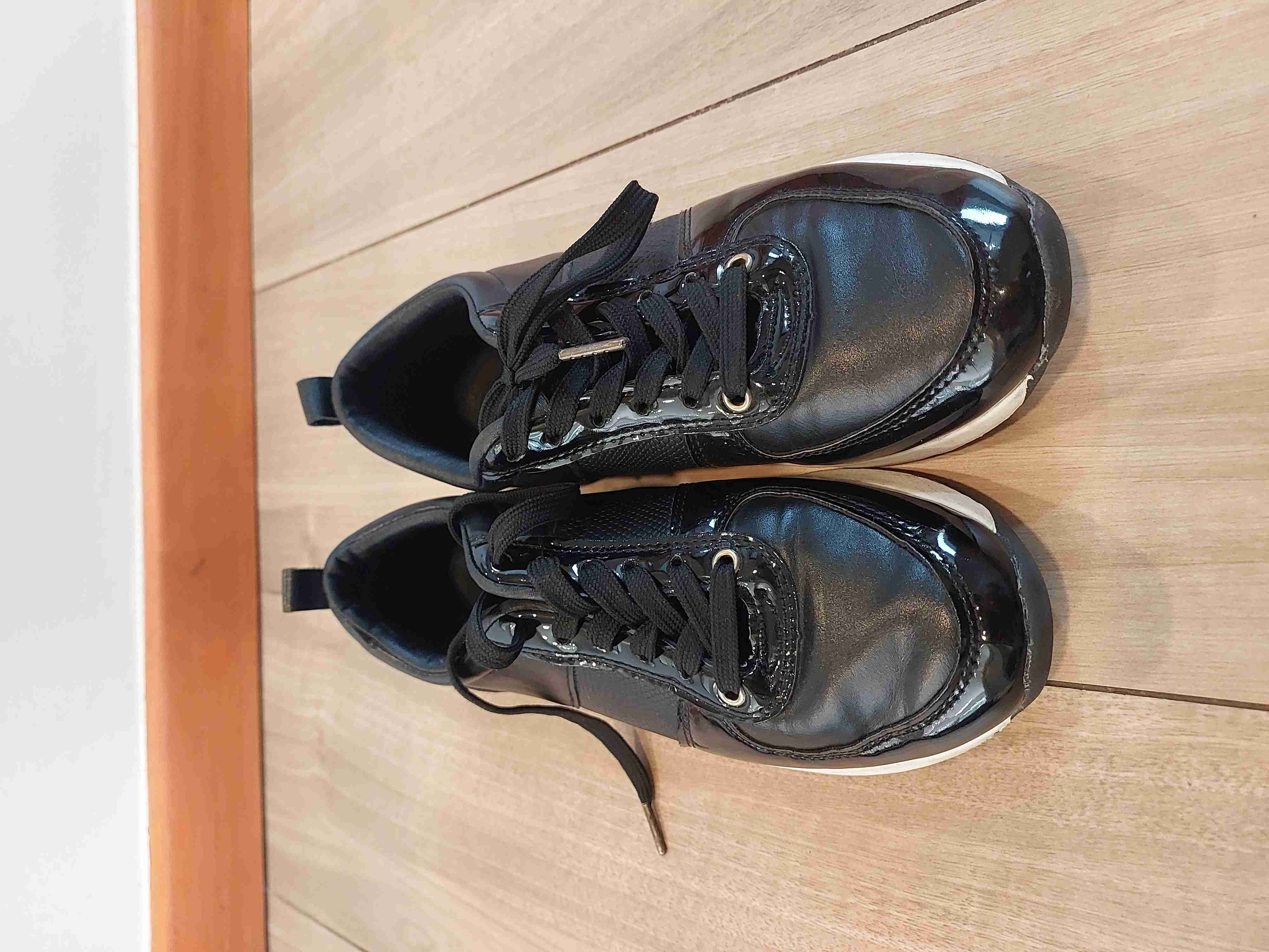 Zapatillas negras con brillo, estilo casual y urbano. En buen estado, cómodas para el uso diario.