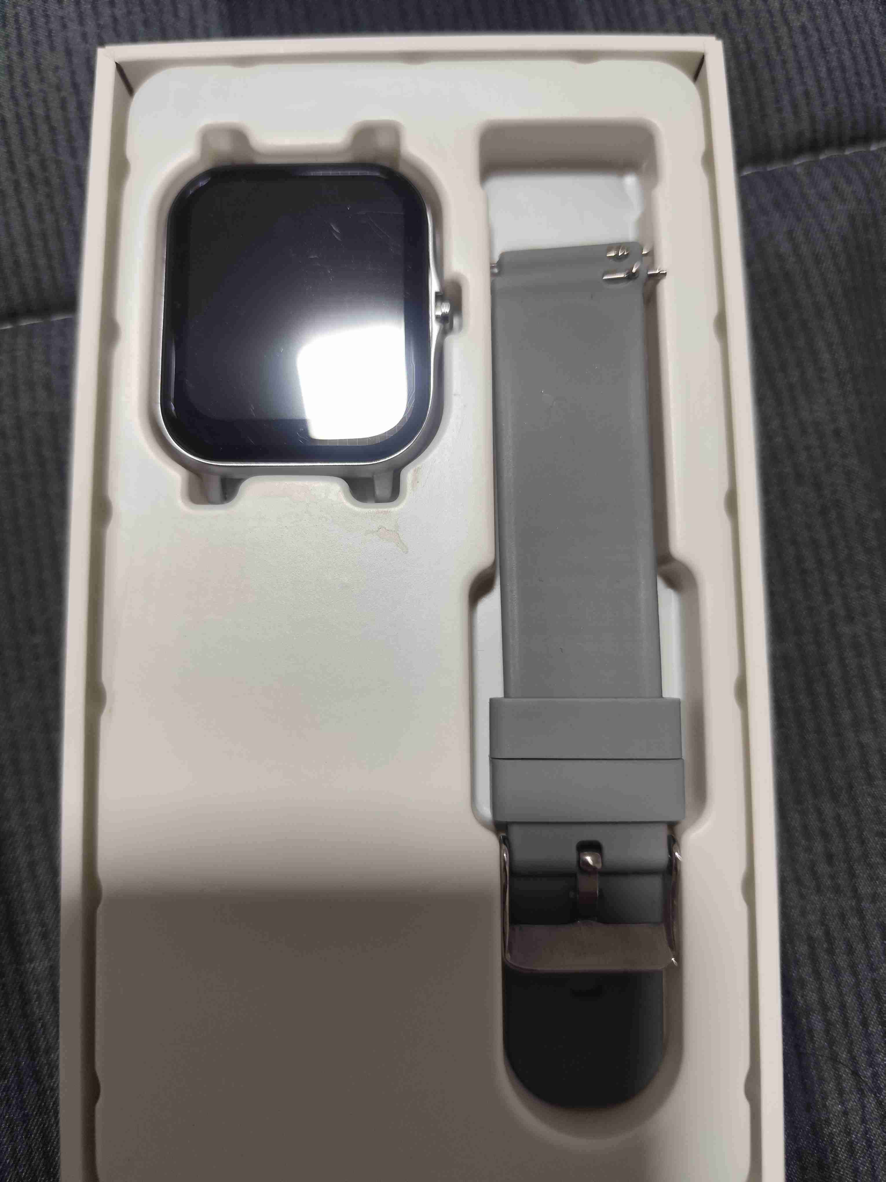 Elegante smartwatch con pantalla táctil y correa intercambiable gris. Ideal para llevar un seguimiento de tu actividad diaria.