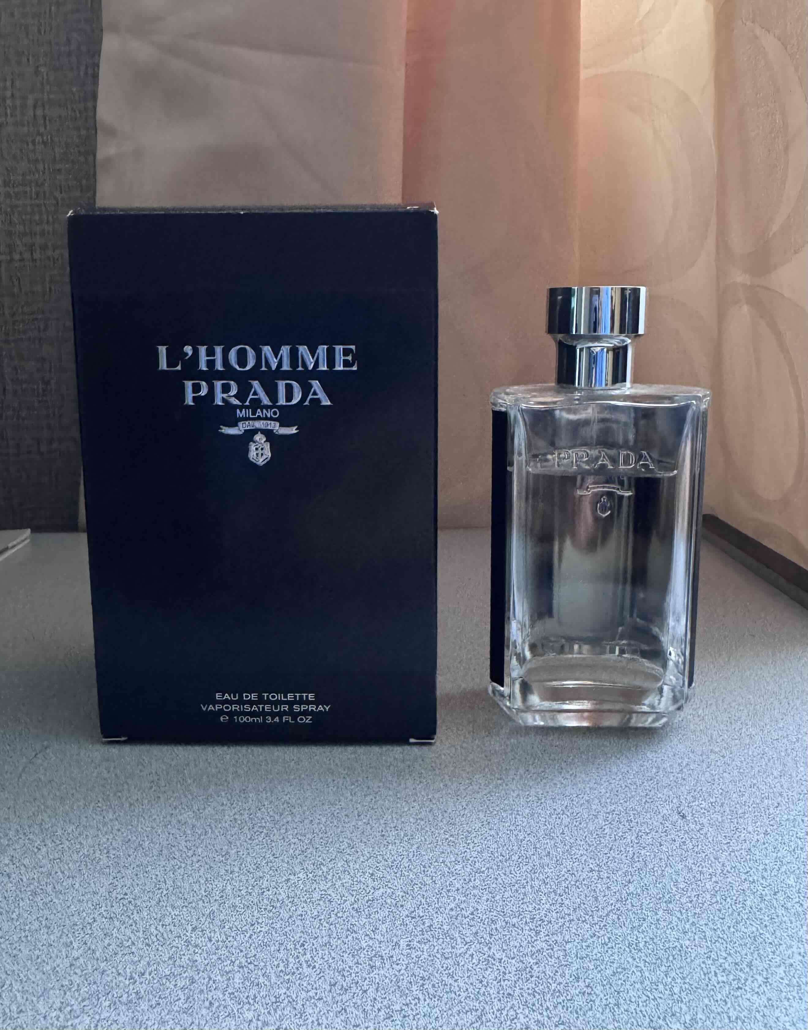 Parcial Prada L’Homme de 100 ml, tal como se ve en la foto queda un 75%. Elegancia italiana. Fragancia masculina sofisticada y elegante. Botella en buen estado, con caja original.