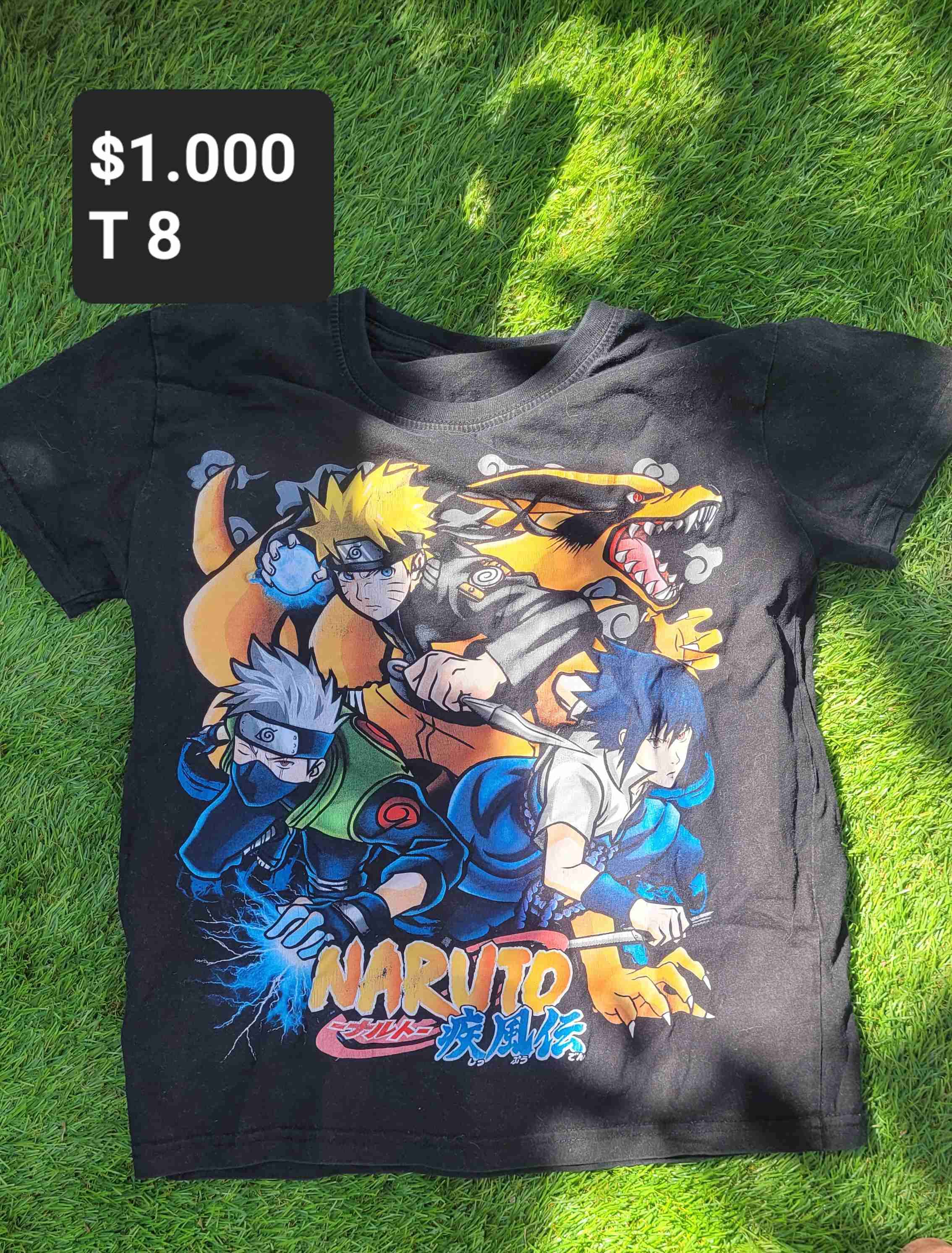 Polera de niño con diseño de Naruto en negro. En buen estado, ideal para fanáticos del anime.