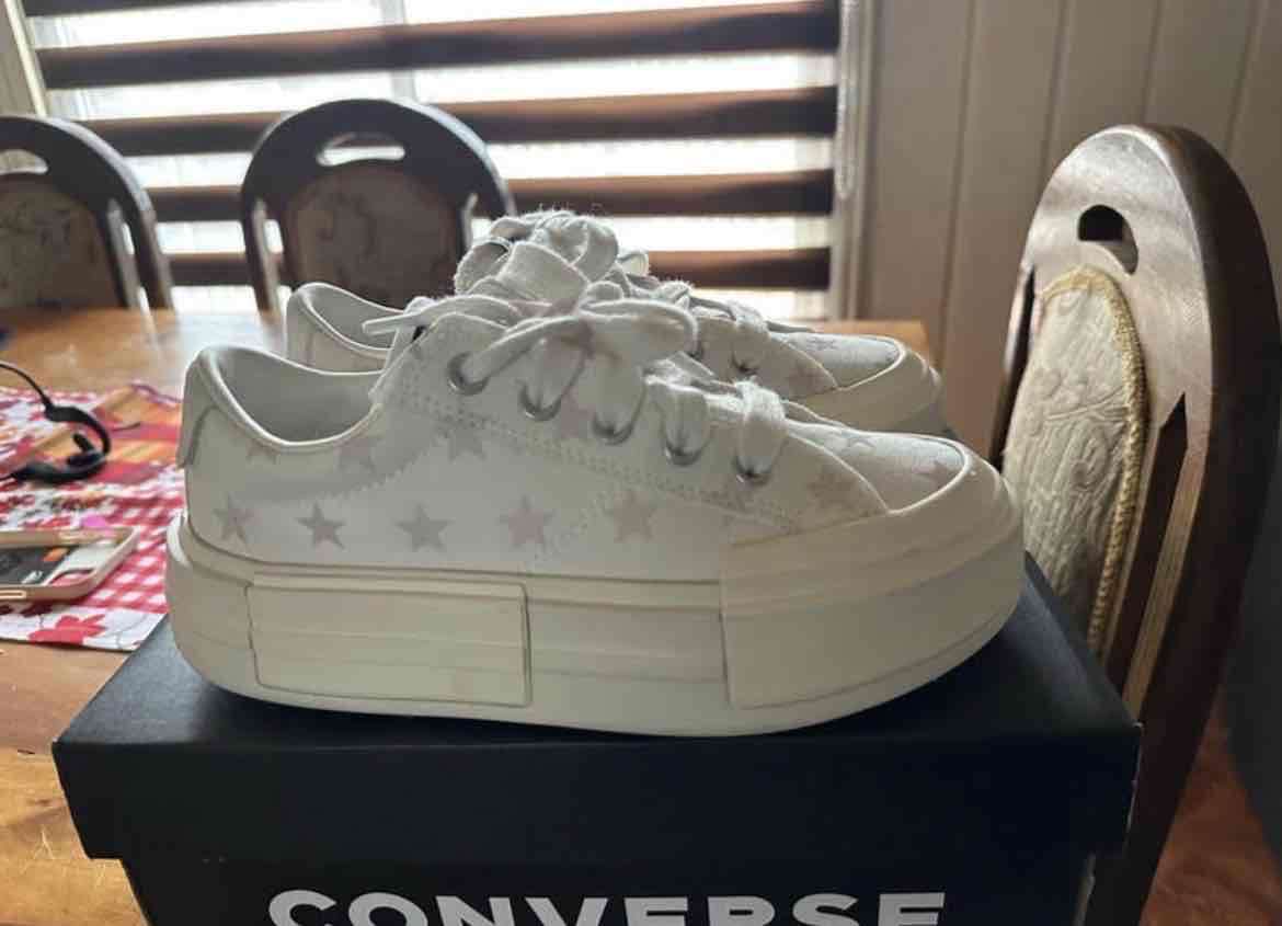 Zapatillas blancas de lona con estrellas y plataforma. En buen estado, ideales para estilo casual. Un uso 23.5cm