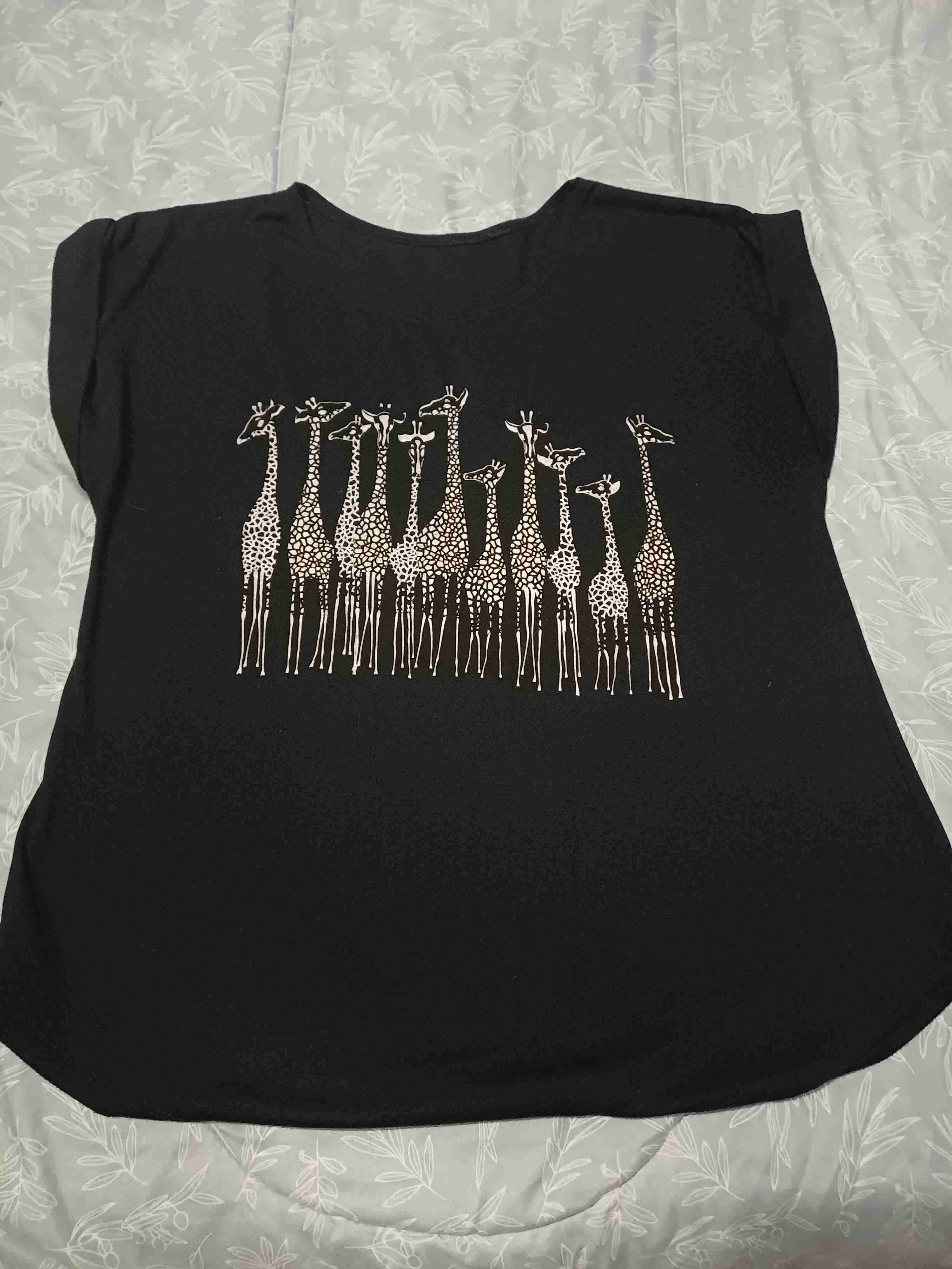 Polera negra de algodón con diseño de jirafas. En buen estado, ideal para uso diario.