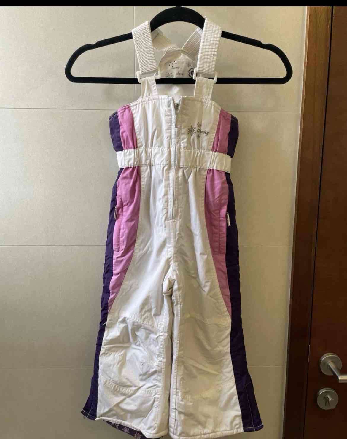 Enterito de esquí para niña en blanco y rosado. Ideal para mantenerla abrigada en la nieve marca Colloki , talla 4