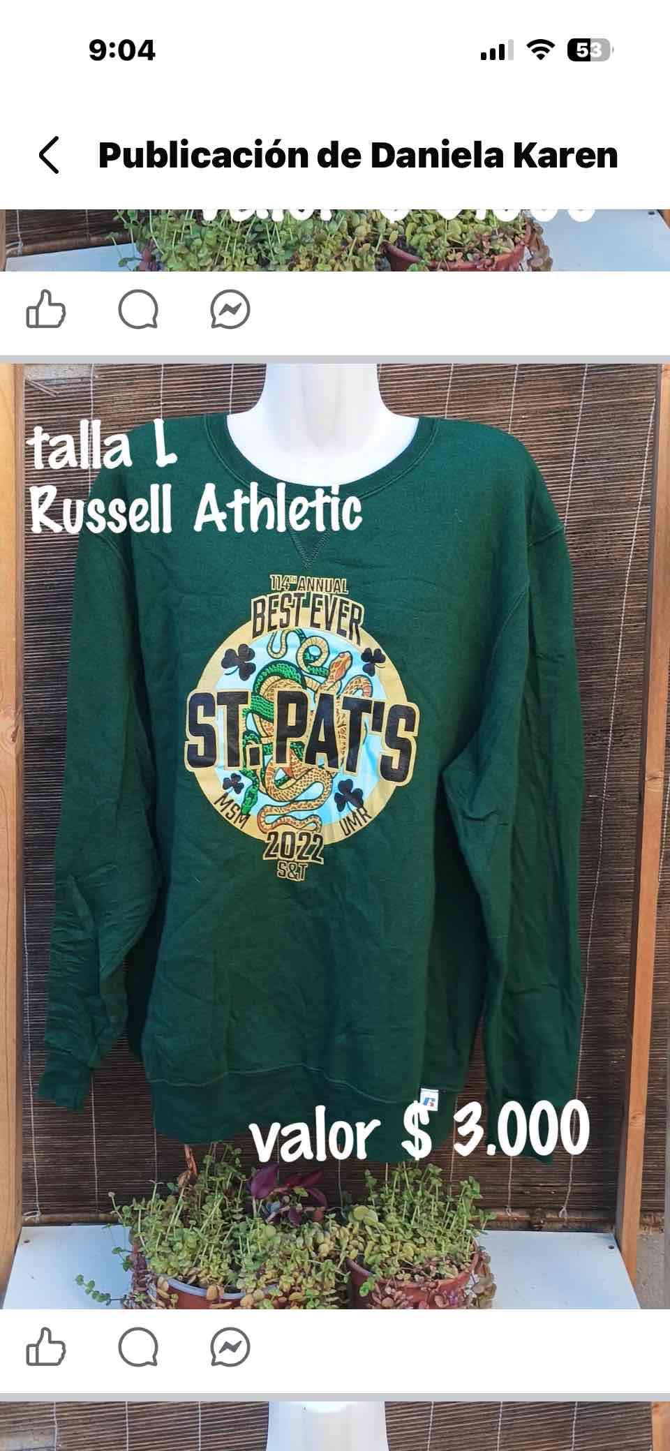 Polerón verde con diseño St. Pat's, perfecto para uso casual. En buen estado, talla L.
