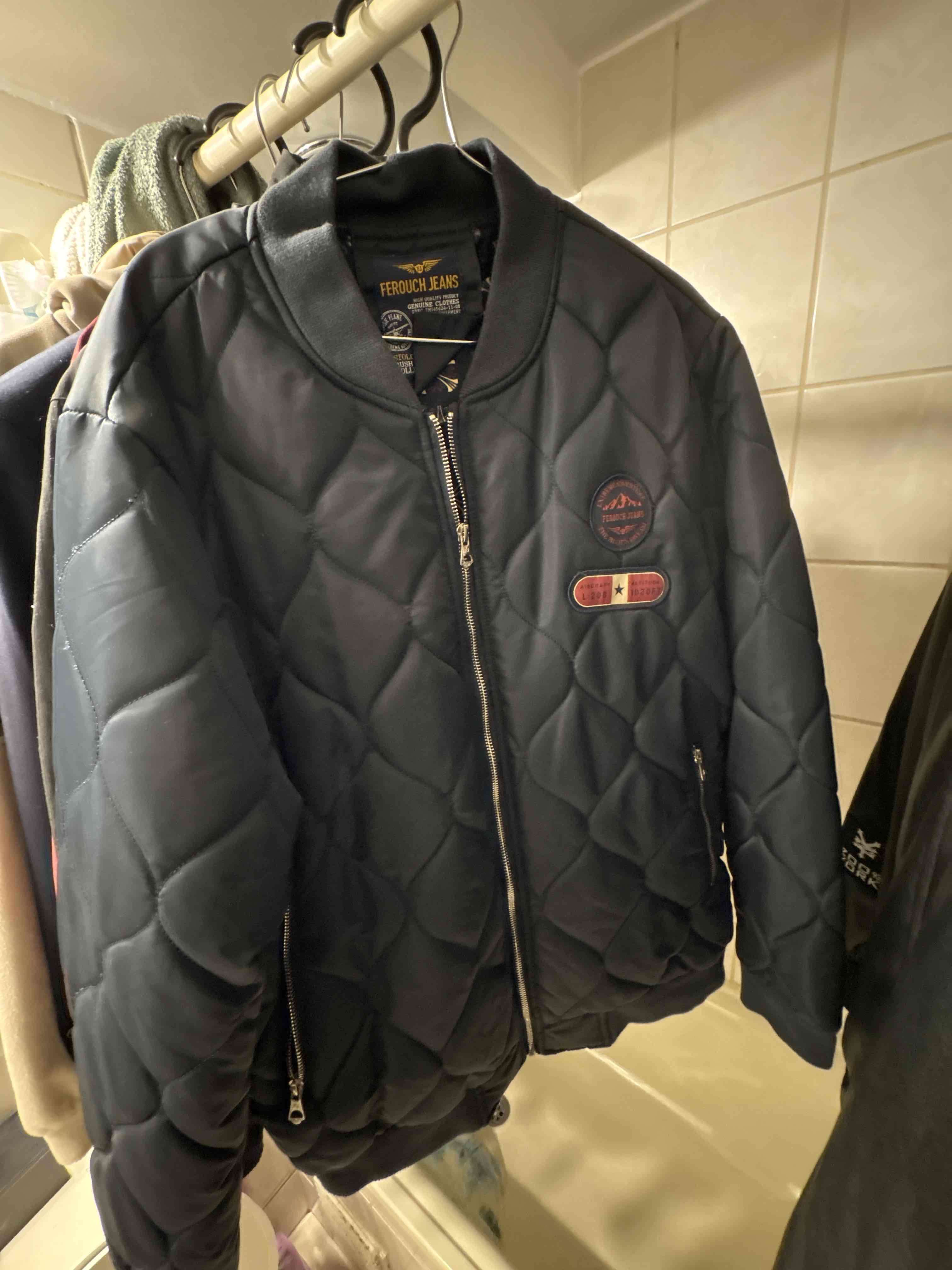 Chaqueta estilo bomber en negro con diseño acolchado. Ideal para el invierno, en buen estado general.