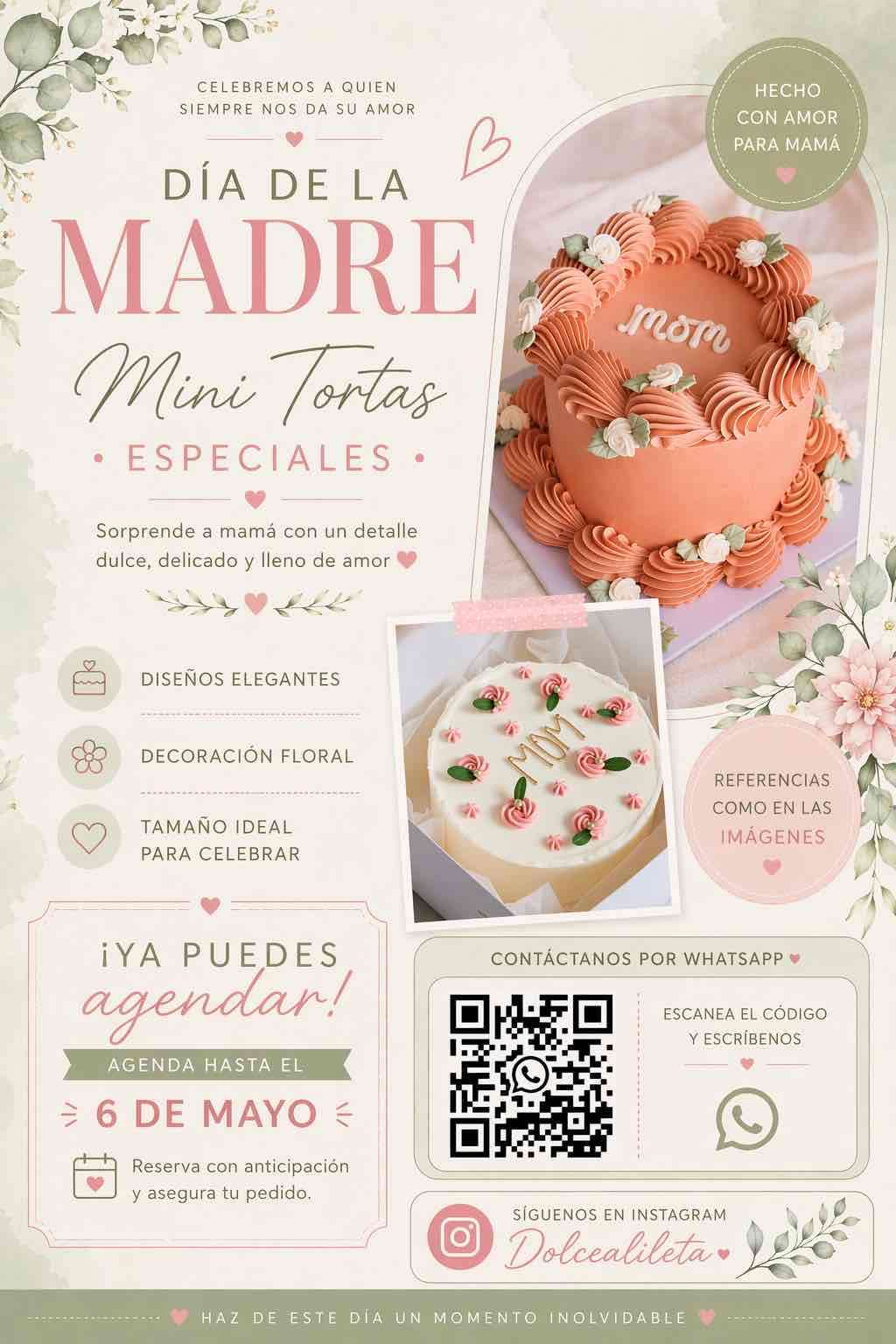 Sorprende a mamá con una mini torta elegante y floral. Ideal para celebraciones especiales.