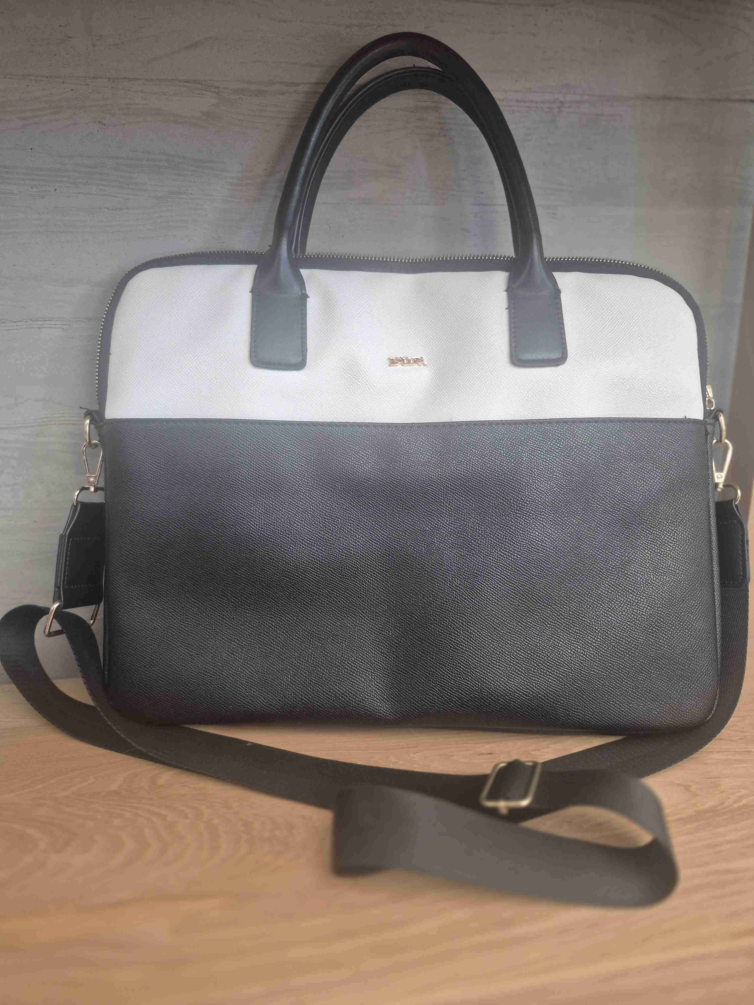 Elegante maletín en tonos blanco y negro, perfecto para llevar al trabajo. En buen estado, ideal para documentos o laptop + cartera chica de regalo negra ideal para eventos.