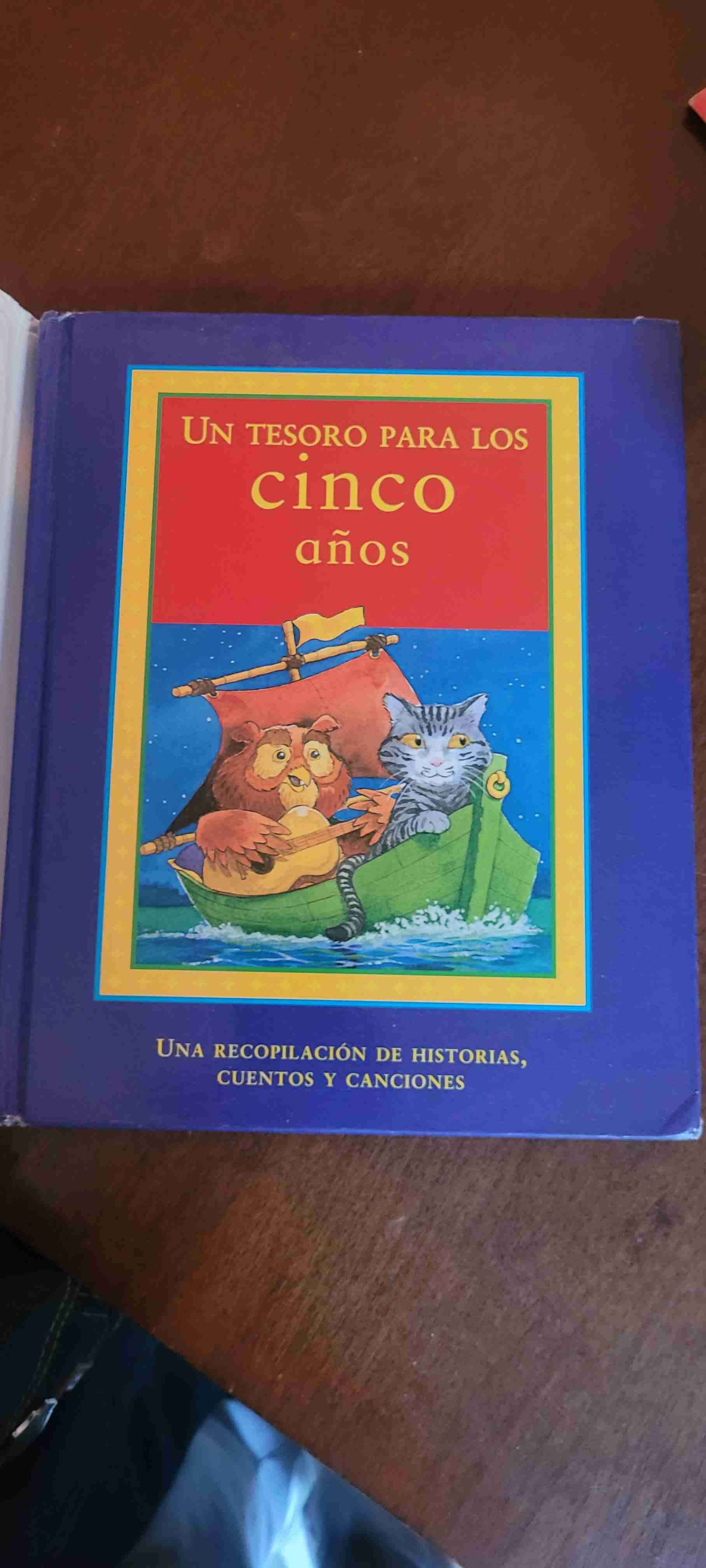 Libro infantil con historias, cuentos y canciones para niños de cinco años. En buen estado, ideal para estimular la lectura.