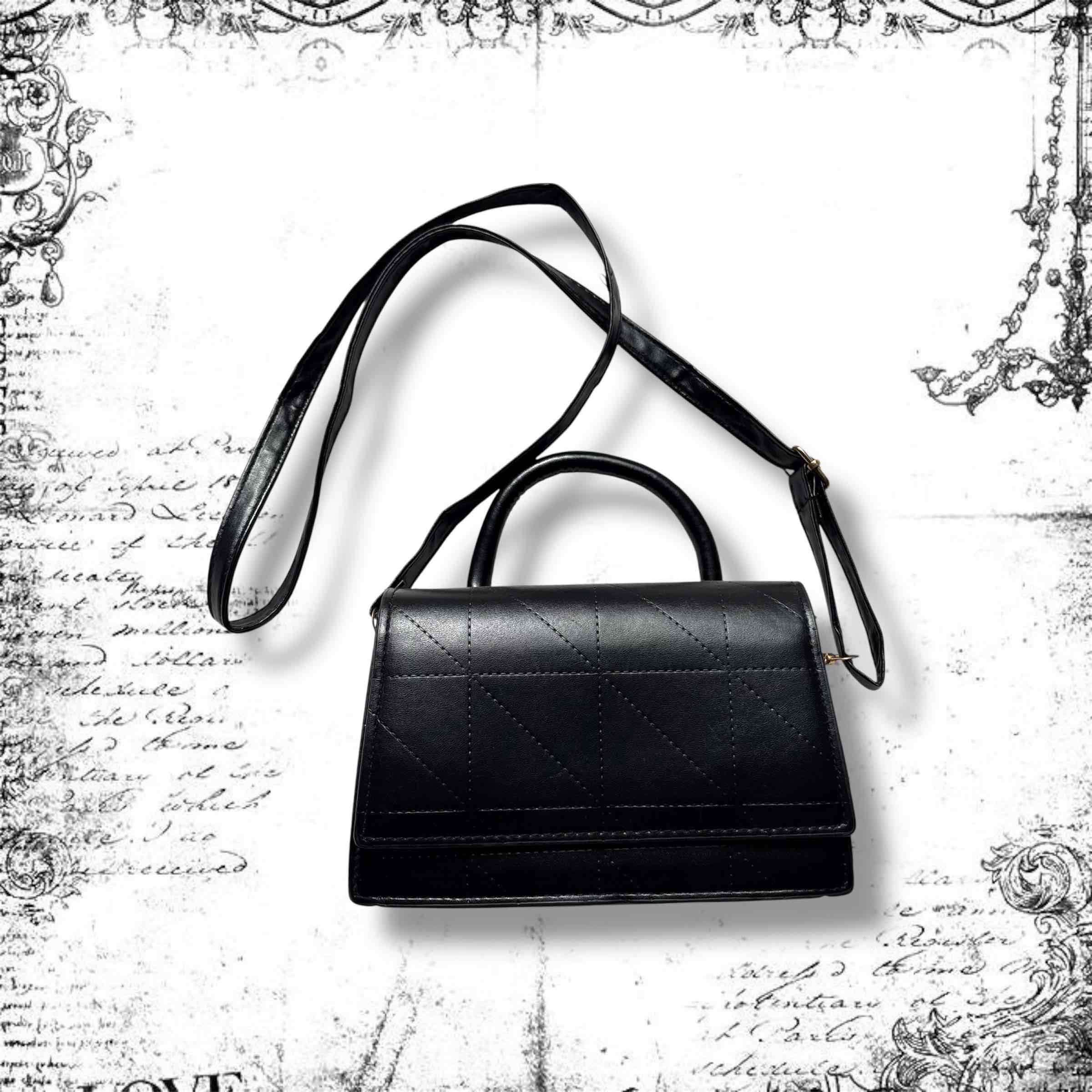 Elegante cartera negra con correa ajustable. Ideal para eventos formales. Buen estado.