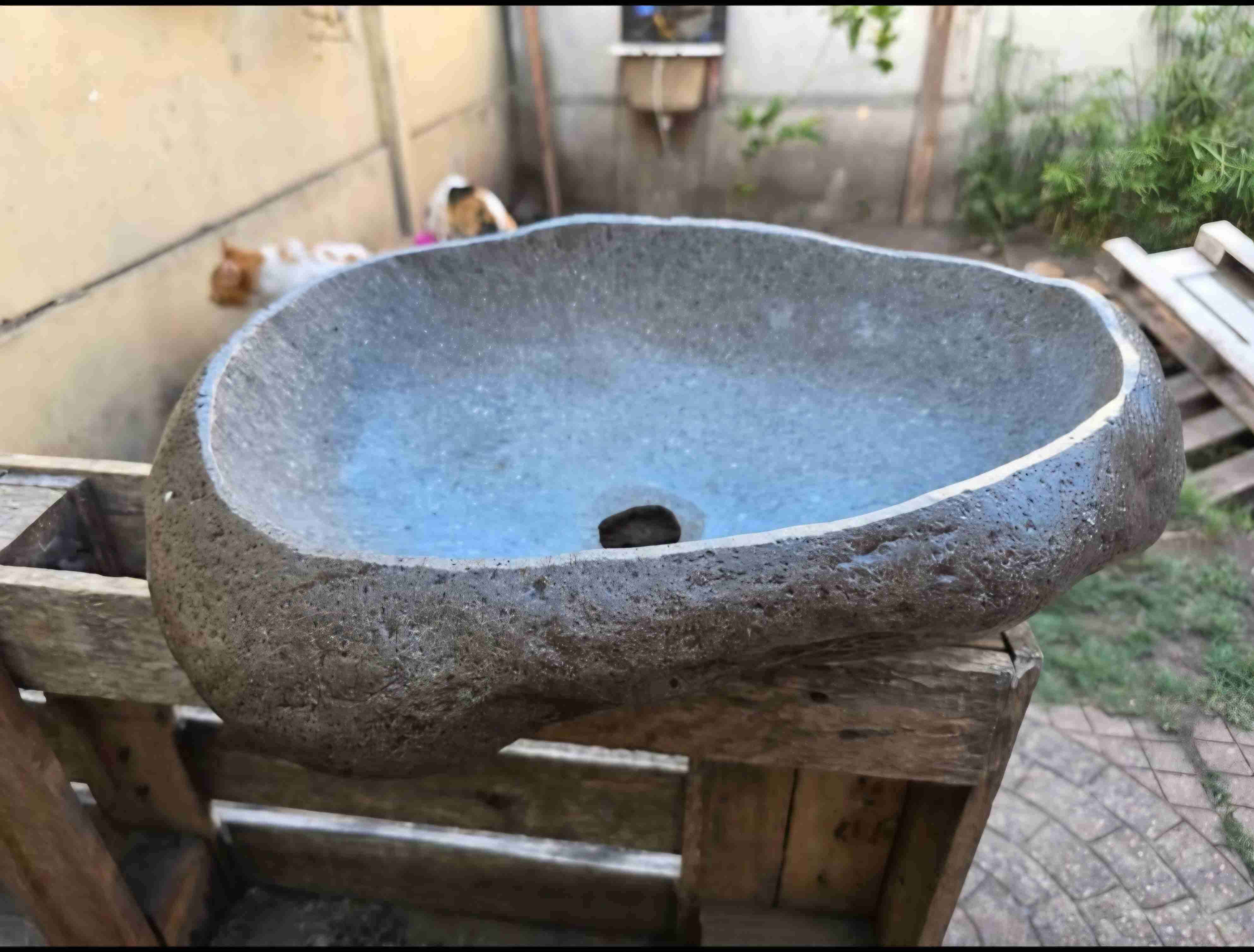 Lavamanos de piedra natural, ideal para darle un toque rústico a tu baño o jardín. Se encuentra en buen estado con algunos signos de uso.