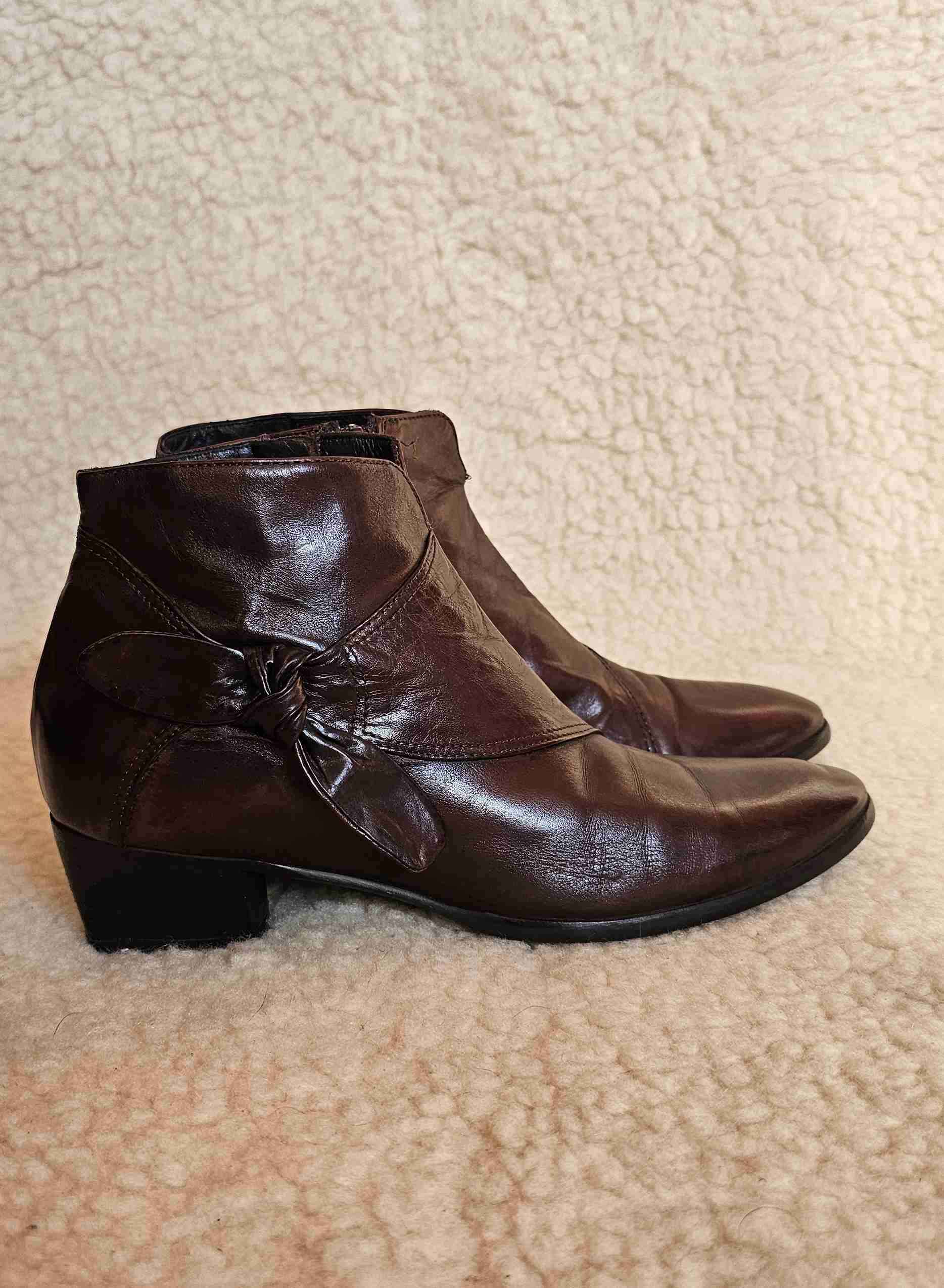Elegantes botines de cuero en color marrón, ideales para el invierno. En buen estado, con pocos signos de uso.