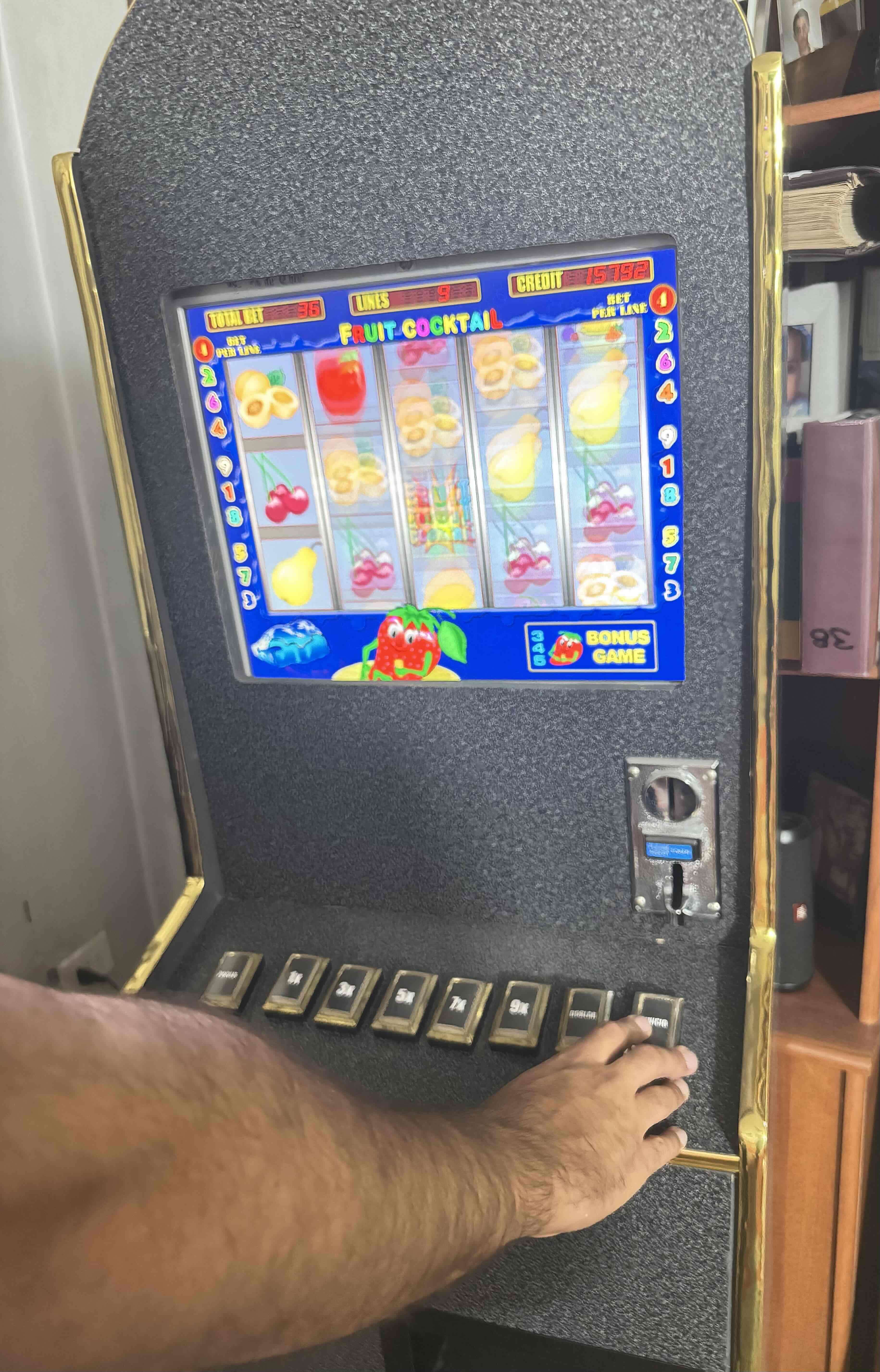 Máquina tragamonedas de juego Fruit Cocktail, ideal para entretenimiento en casa. En buen estado y funcionando.