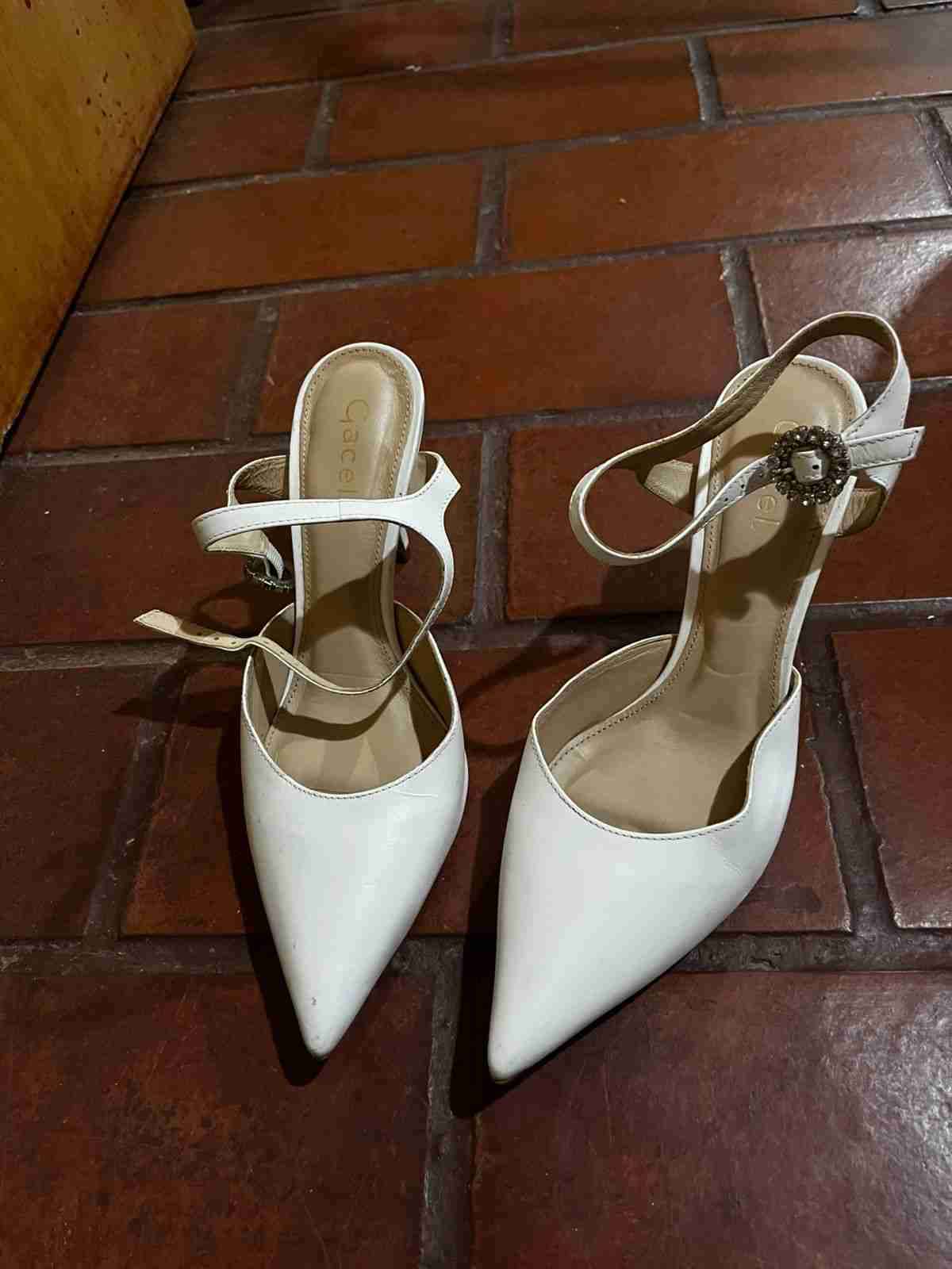 Zapatos elegantes de color blanco con taco medio y punta fina. En excelente estados los zapatos. Entrego en Centro de Villa Alemana. Cualquiera en $5.000