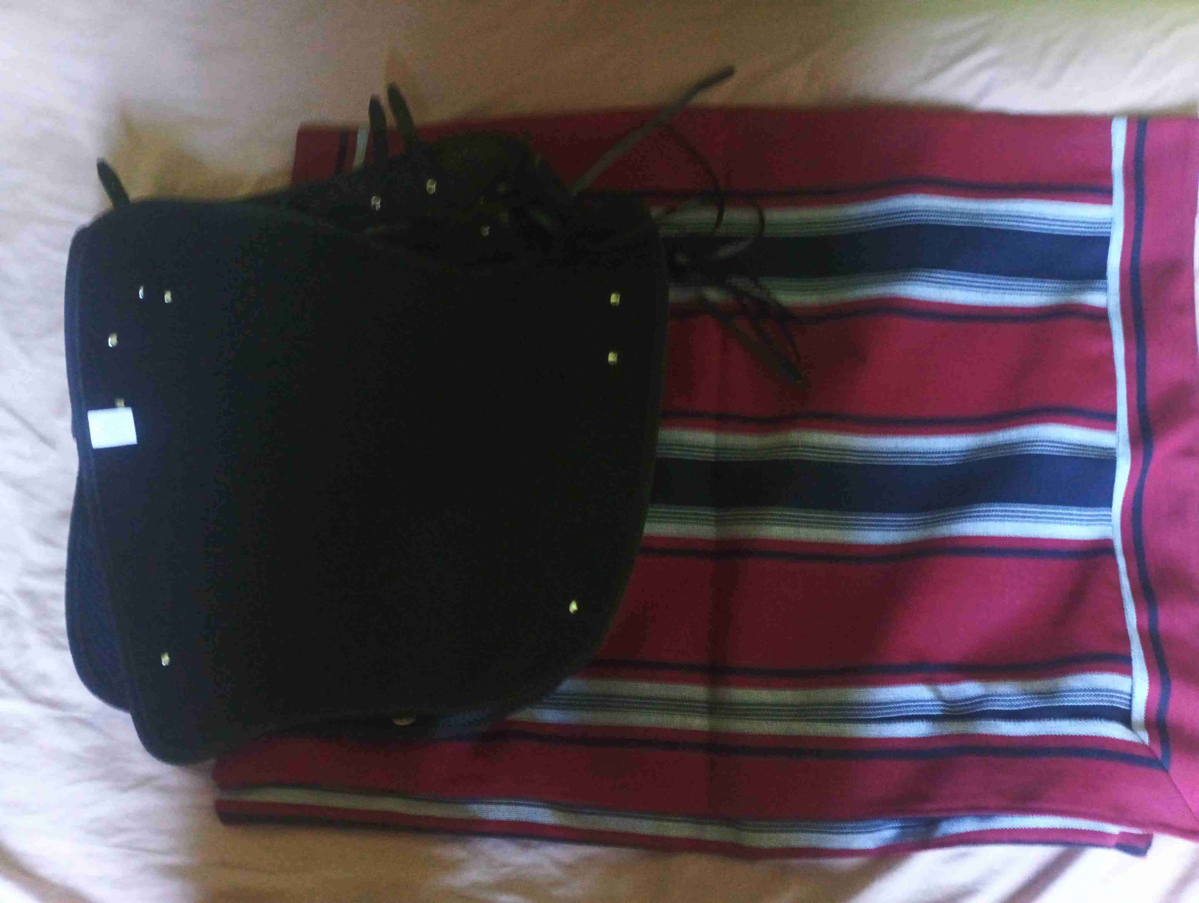 Manta chilena de lana con diseños de rayas. Ideal para eventos folclóricos. Buen estado general.