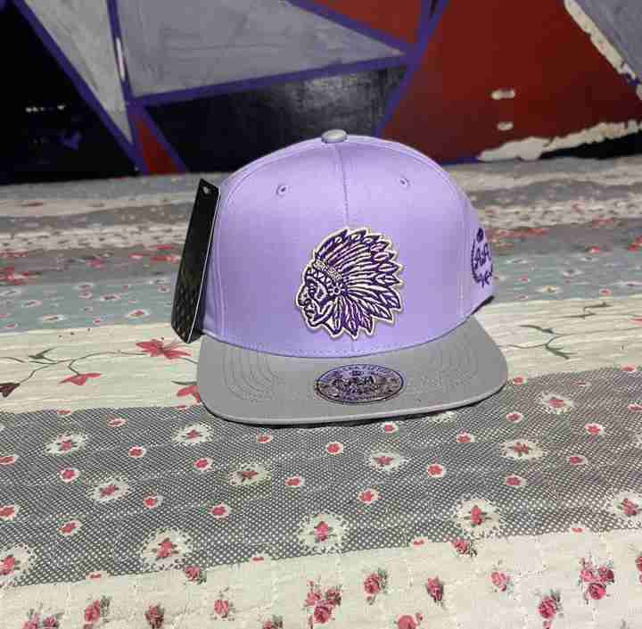 Gorra estilo snapback en color morado con visera gris. Diseño moderno y juvenil, perfecta para uso diario.