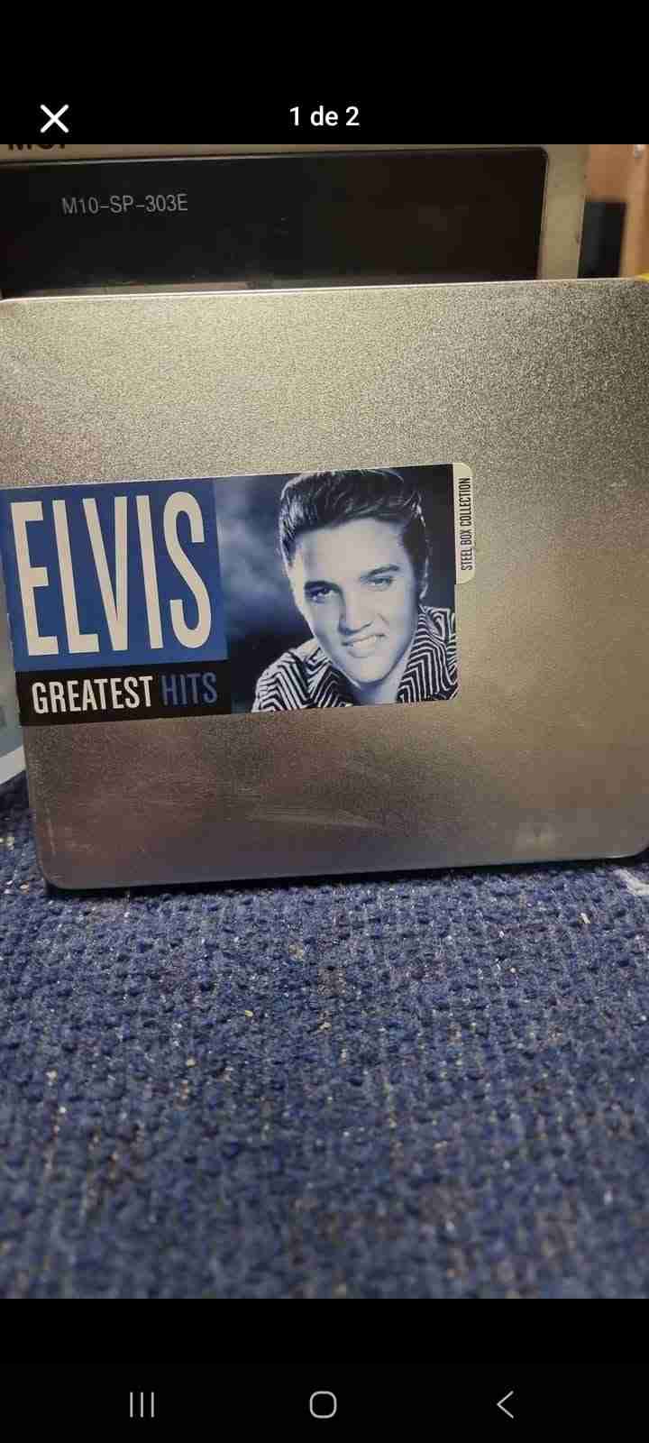 Caja metálica de colección con los grandes éxitos de Elvis Presley. Ideal para fanáticos de la música clásica.