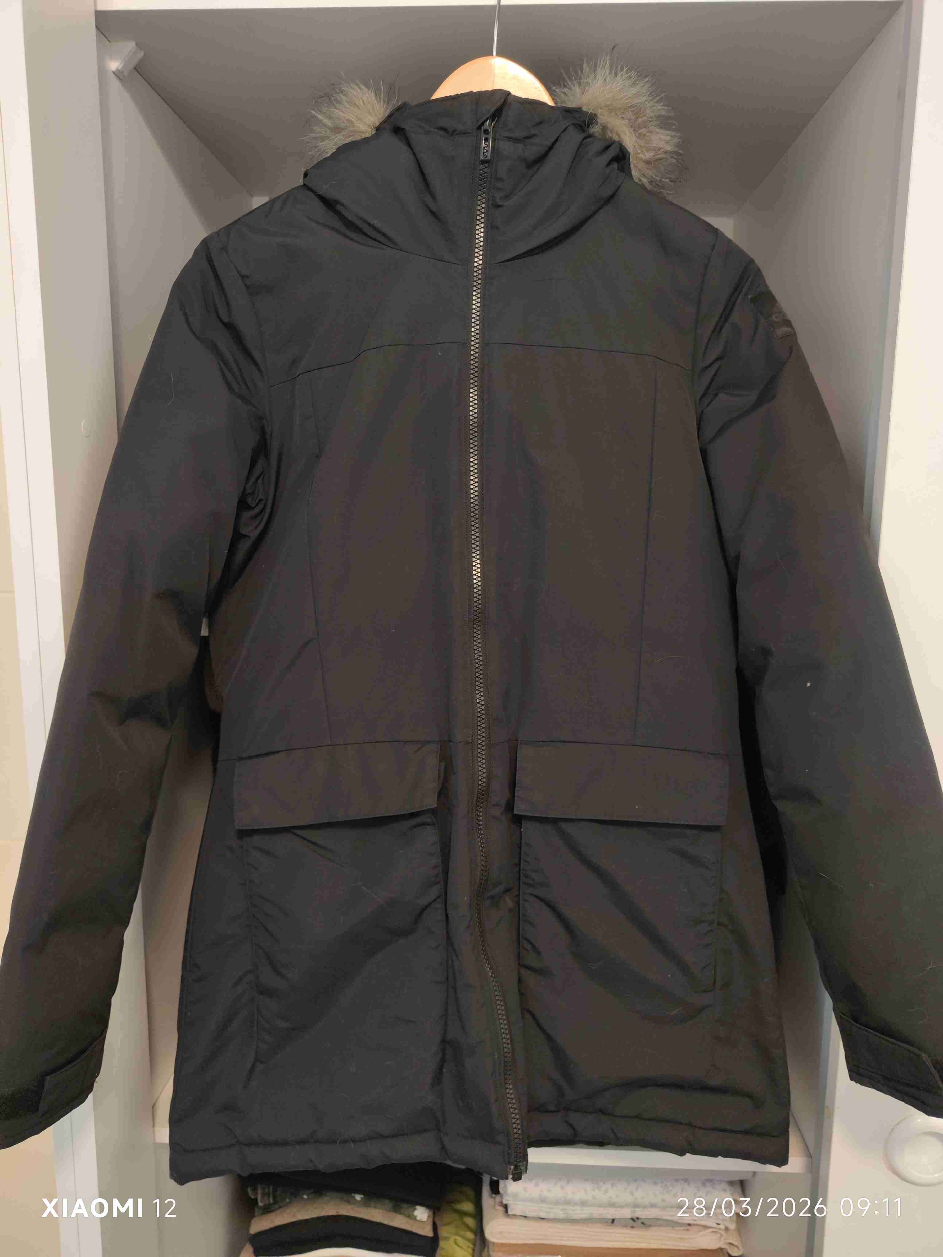 Parka de invierno negra, ideal para el frío. Buen estado, con capucha y bolsillos.