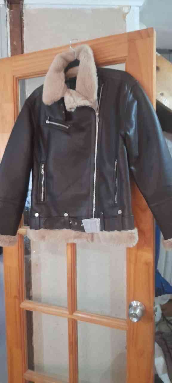 Elegante chaqueta de cuero negra con forro de piel, ideal para este invierno frío Esta nueva Dice M pero es L Oversaid