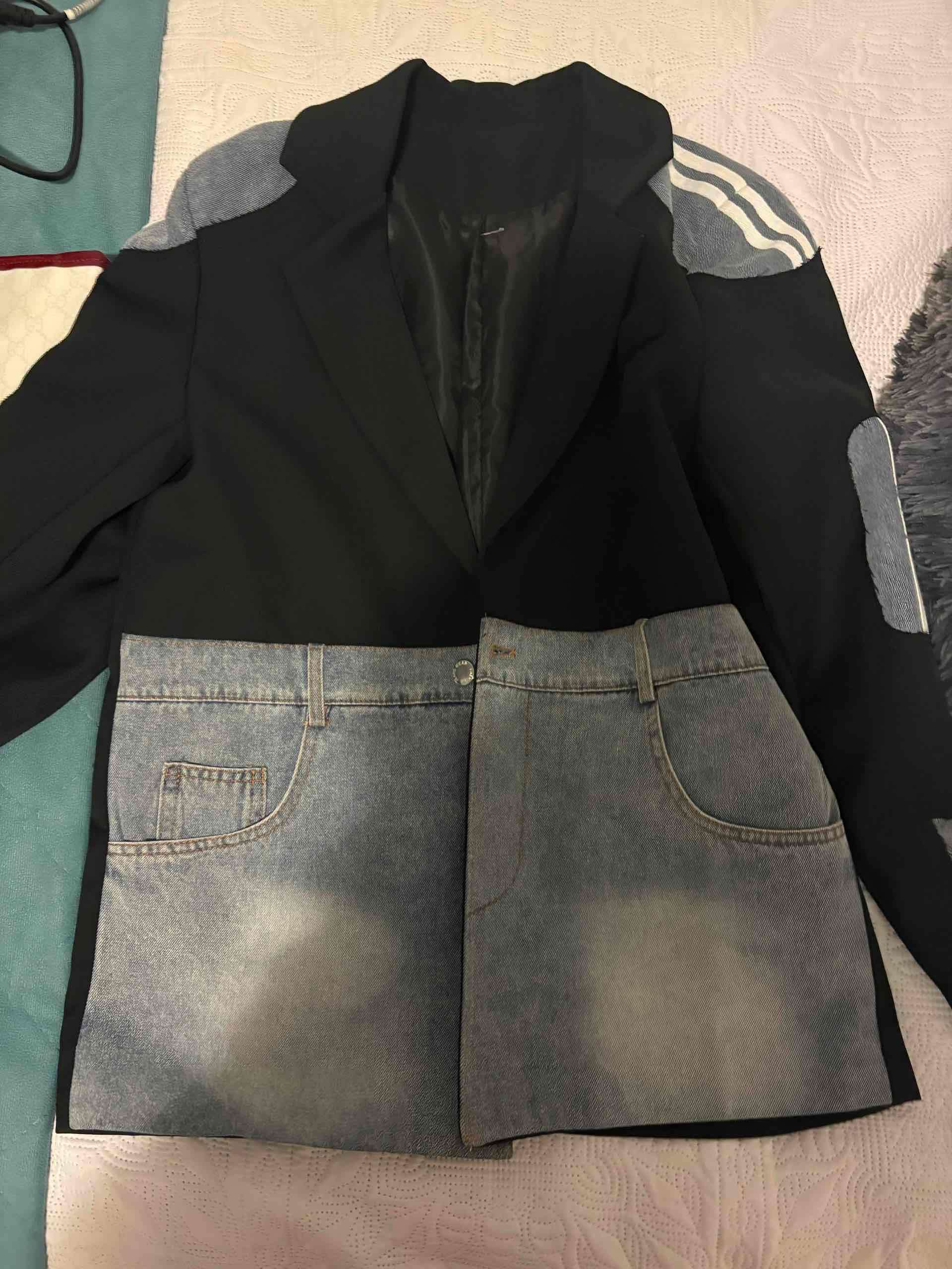 Blazer negro elegante con diseño único en mezclilla. Ideal para un look casual y moderno.