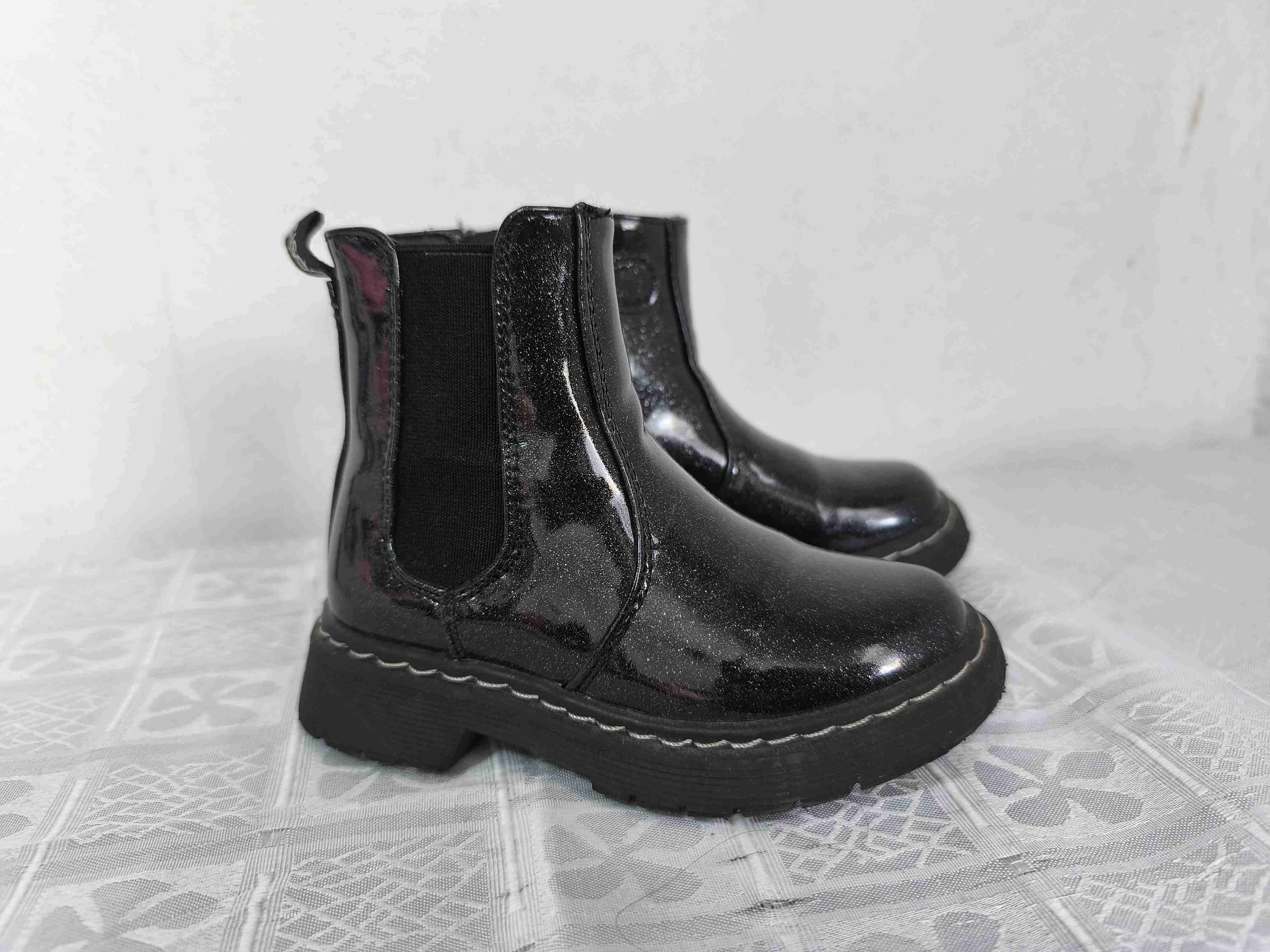 Elegantes botines negros de charol estilo Chelsea. Ideales para uso diario o salidas formales.