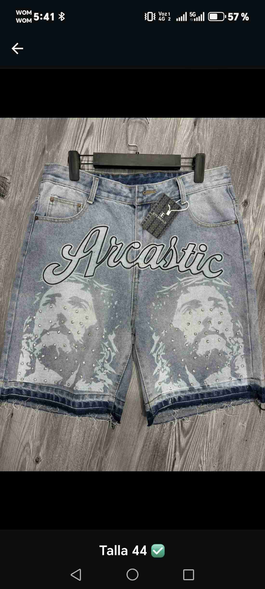 Shorts de mezclilla con diseño gráfico y brillantes. Perfectos para un estilo urbano y desenfadado. En buen estado.