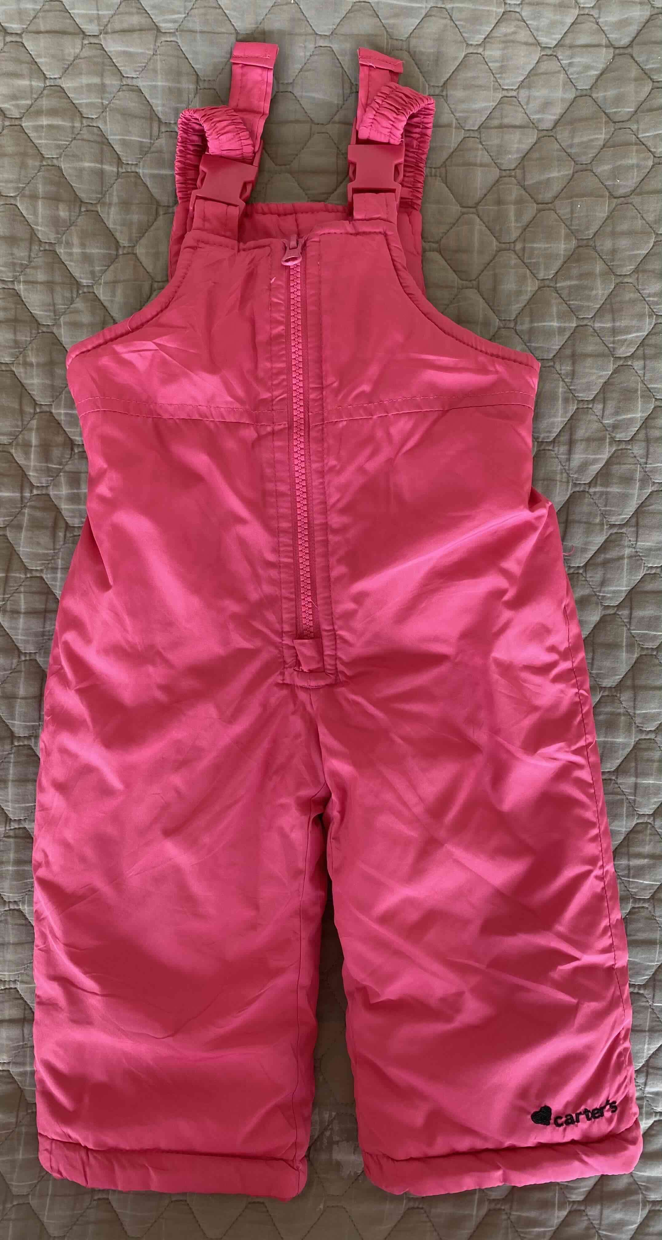 Overol infantil rosado, ideal para días fríos. En buen estado, con tirantes ajustables. Perfecto para jugar en la nieve. Talla de 12 meses, marca Carters