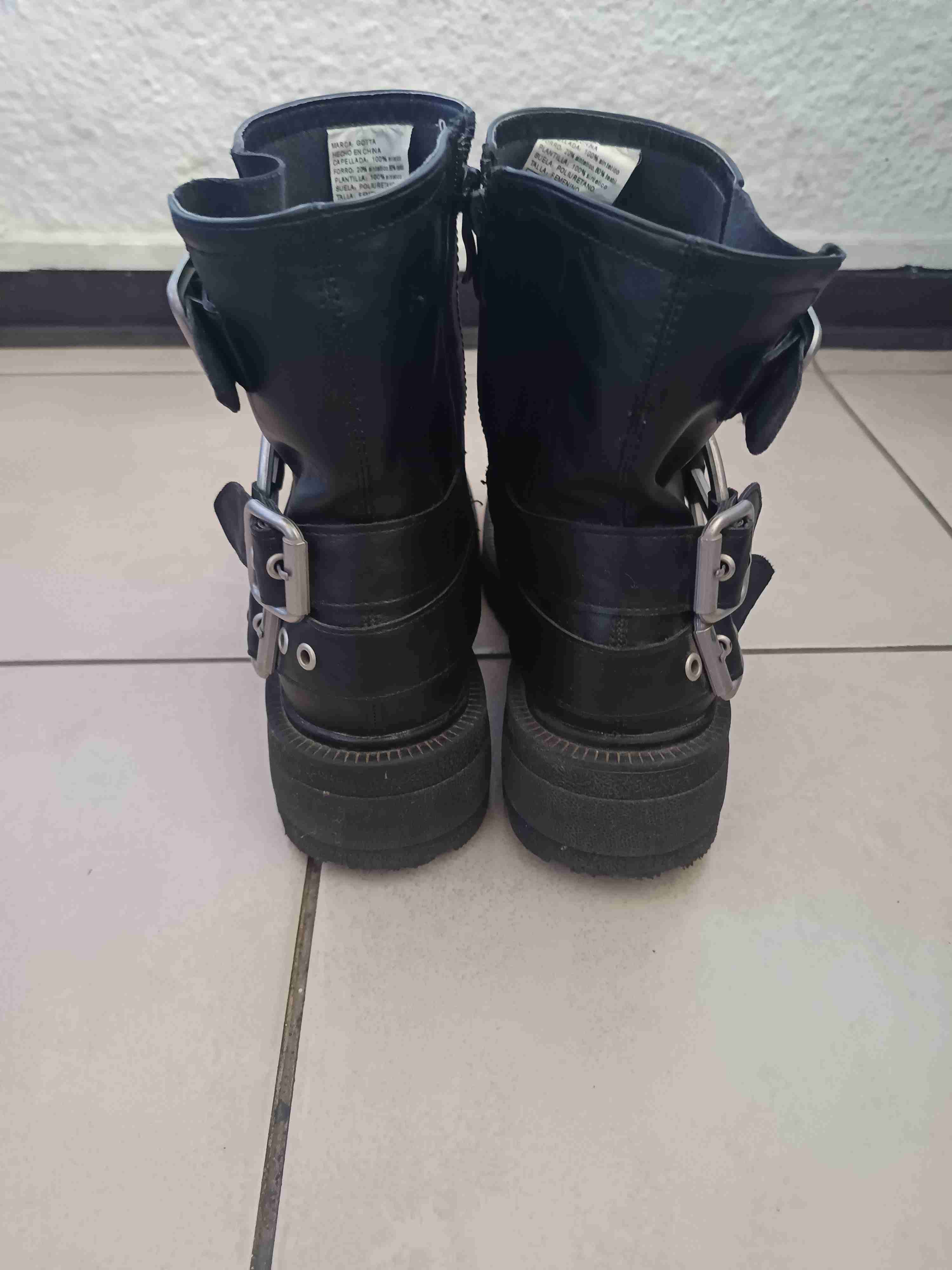 Botas negras con estilo robusto y hebillas decorativas. Buen estado, ideales para invierno. Marca gotta talla 39