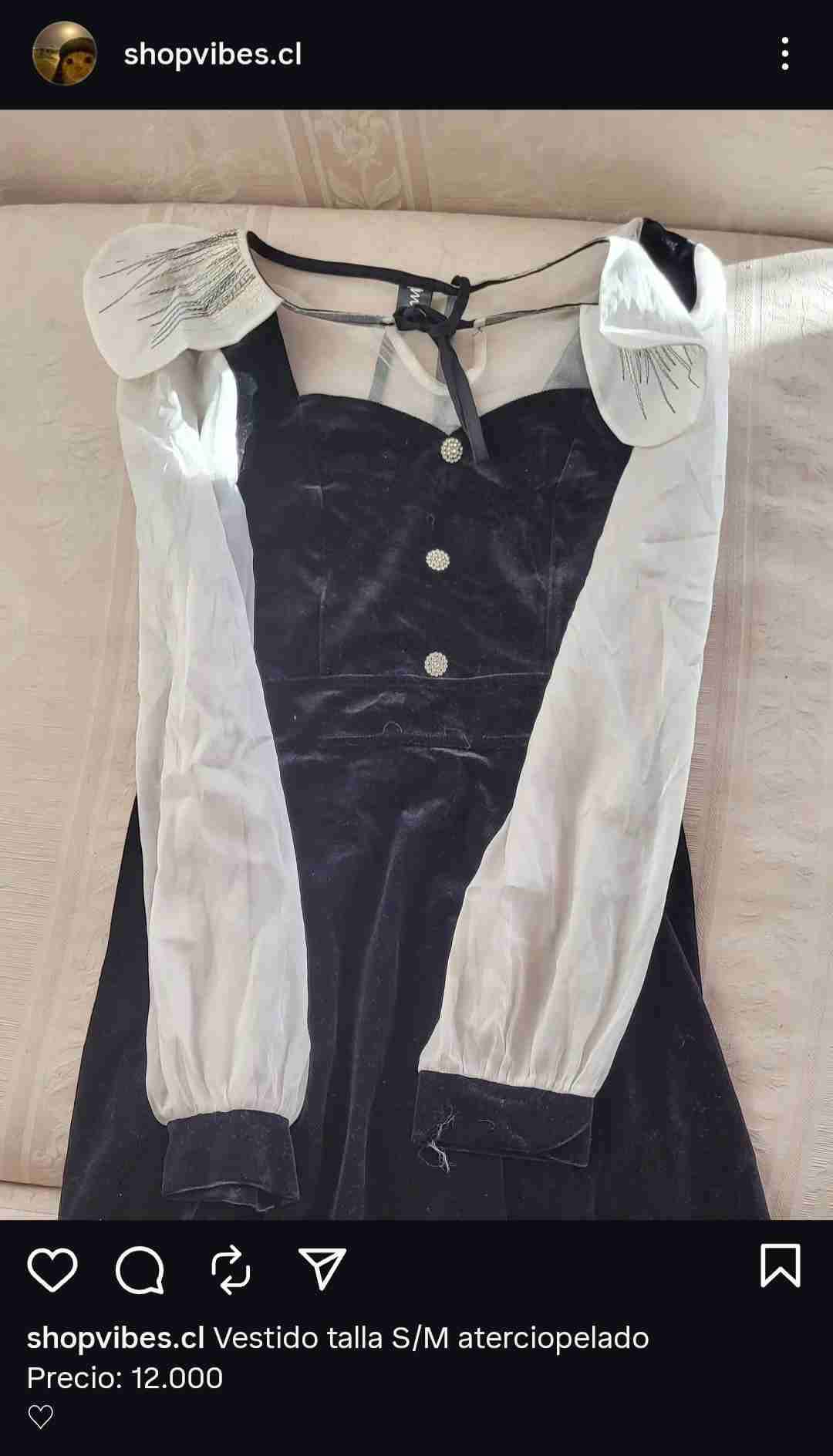 Elegante vestido de terciopelo con detalles en blanco, ideal para ocasiones especiales. En buen estado. Talla S/M