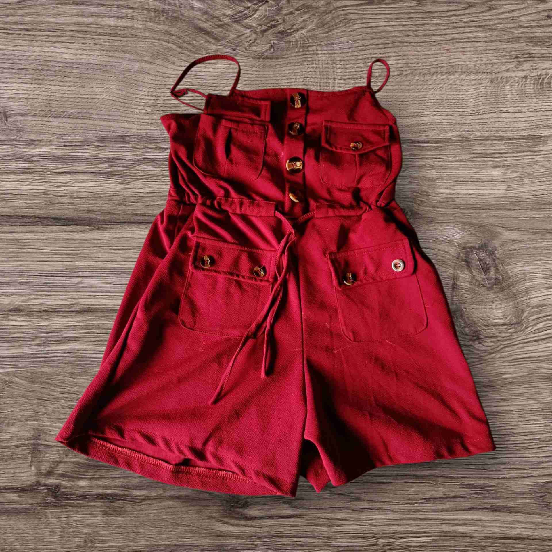 Enterito rojo con botones, ideal para días cálidos. En buen estado, fresco y cómodo.