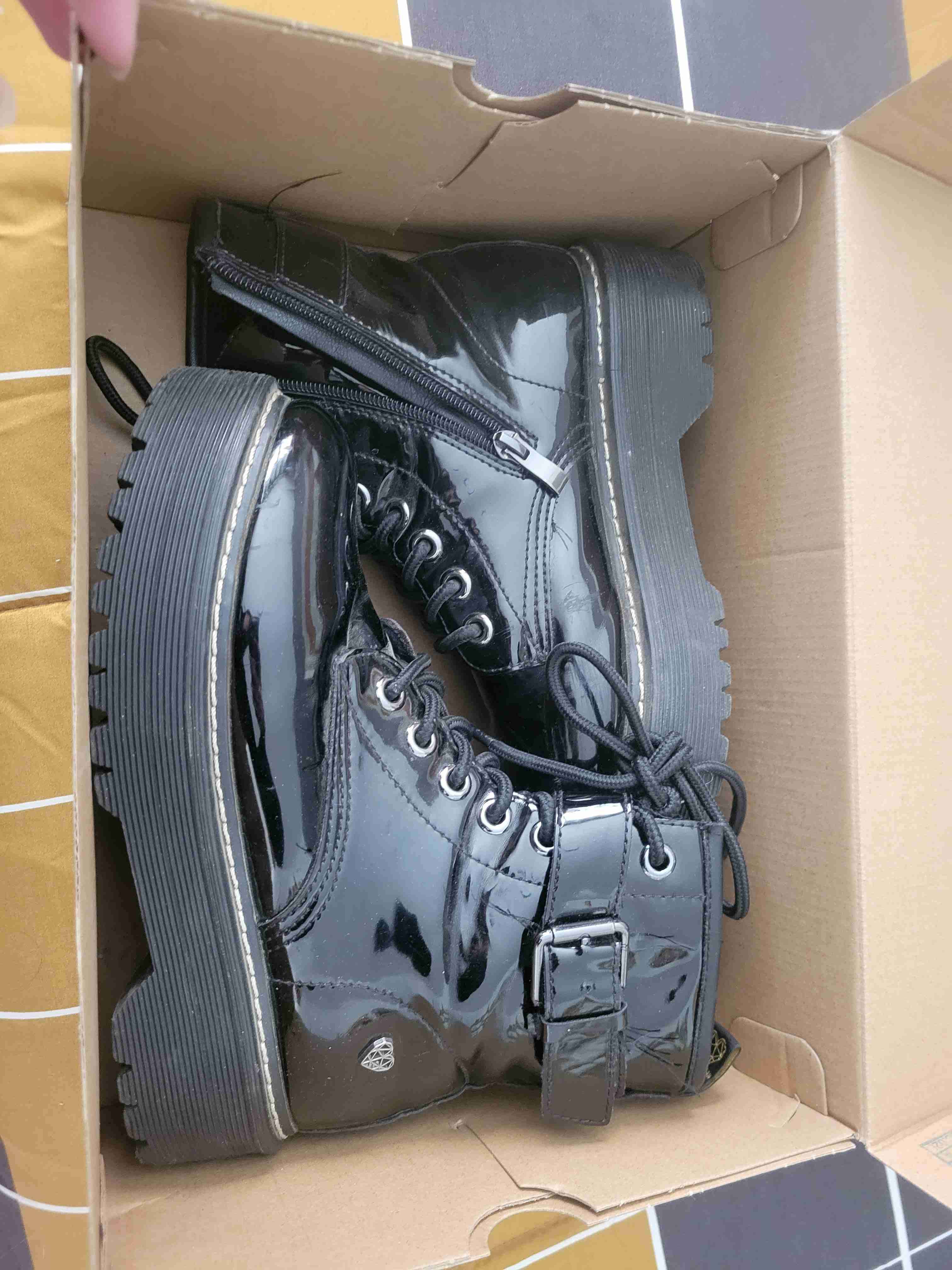 Botas estilo militar en charol negro con plataforma alta. Perfectas para un look audaz y moderno. En buen estado, poco uso. Número 37, cmoran