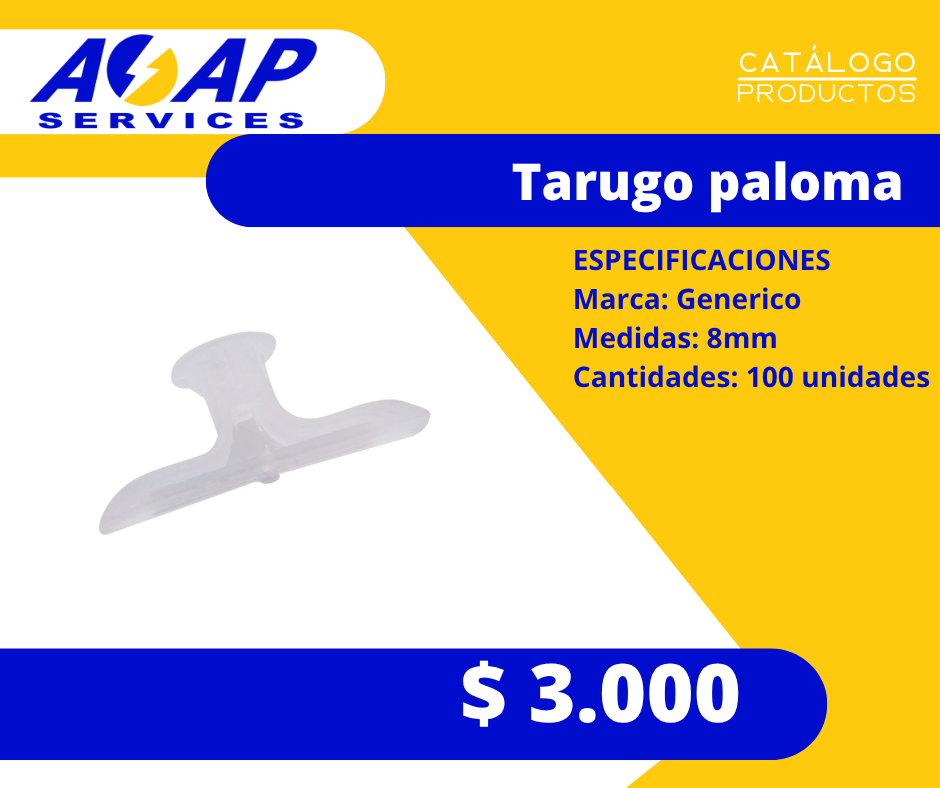 Set de 100 tarugos tipo paloma, ideales para fijaciones seguras en muros de yeso-cartón (volcanita) o tabiquería. Su diseño permite un anclaje firme al expandirse detrás de la plancha. Especificaciones técnicas: Tipo: Tarugo Paloma (Mariposa). Marca: Genérico. Medida: 8 mm. Cantidad: 100 unidades por paquete. Uso: Ideal para colgar cuadros, repisas livianas o accesorios en muros huecos. Estado: Nuevo.