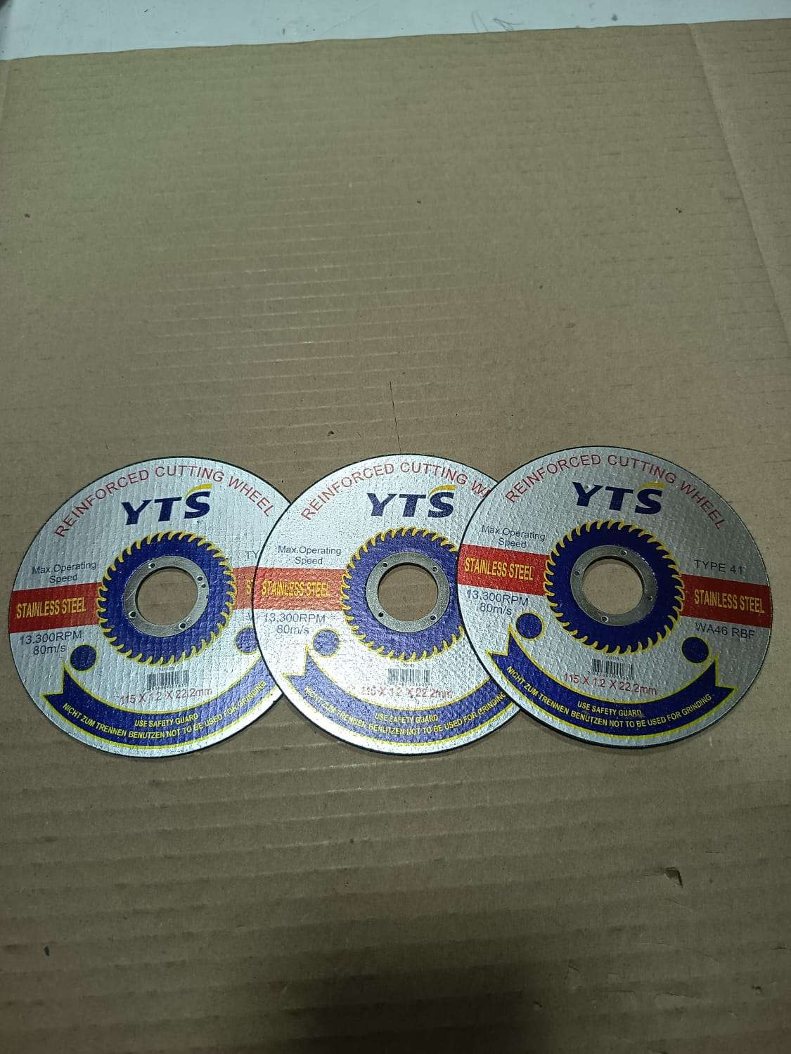 ¡Pack conveniente para tus proyectos de herrería y construcción! Incluye 3 discos abrasivos de corte extra fino (1.2mm), ideales para lograr cortes rápidos y precisos con un acabado profesional en diversos metales. Detalles del pack: Cantidad: 3 unidades. Marca: YTS. Medidas: 4 1/2" (115 x 1.2 x 22.2 mm). Compatibilidad: Para esmeriles angulares de 4 1/2 pulgadas. Uso: Acero inoxidable, fierro, latas y metales en general. Rendimiento: Hasta 13.300 RPM. Estado: Productos nuevos.