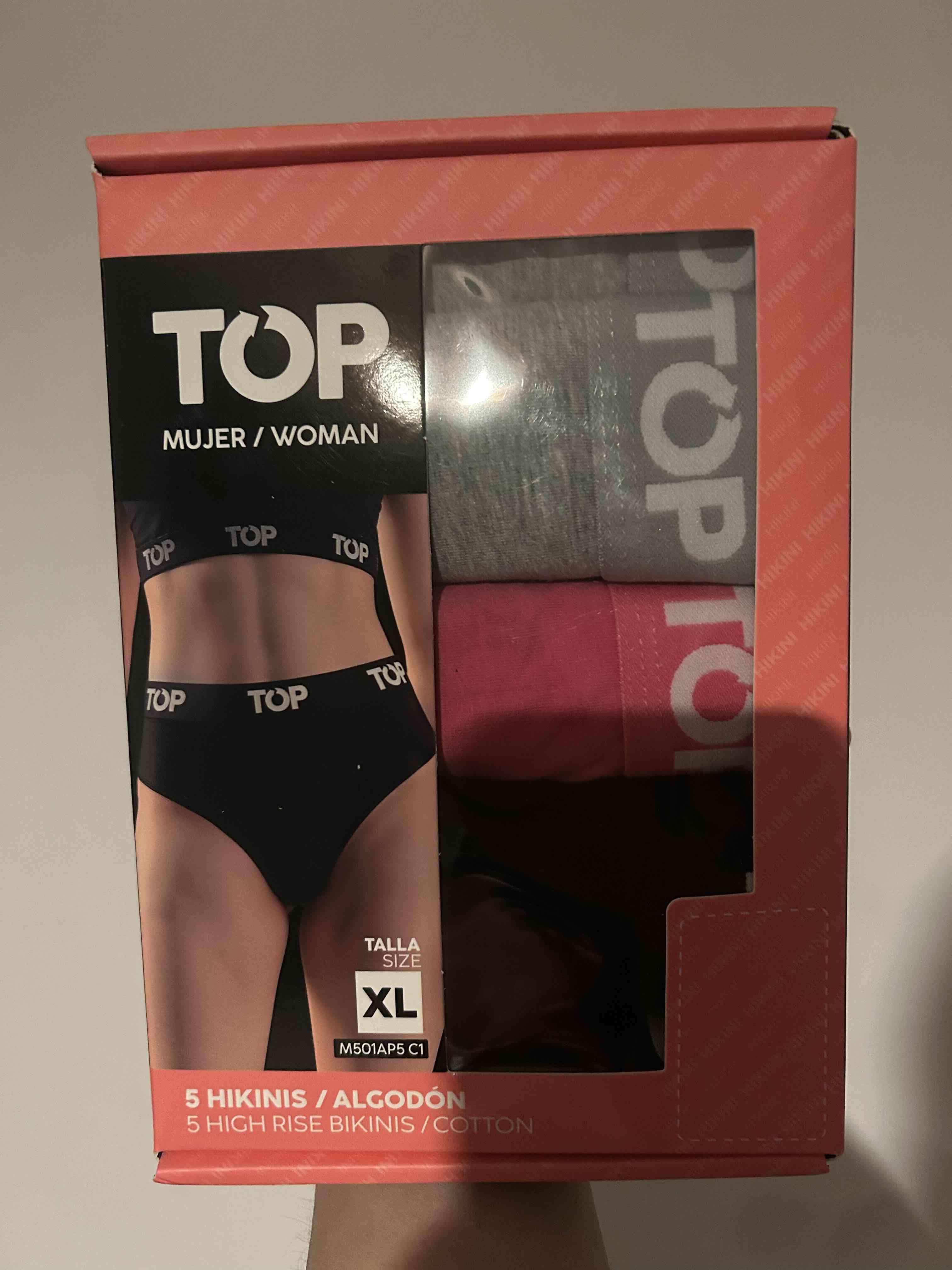 Pack de 5 calzones hikini de algodón para mujer en talla XL. Cómodos y de buena calidad.