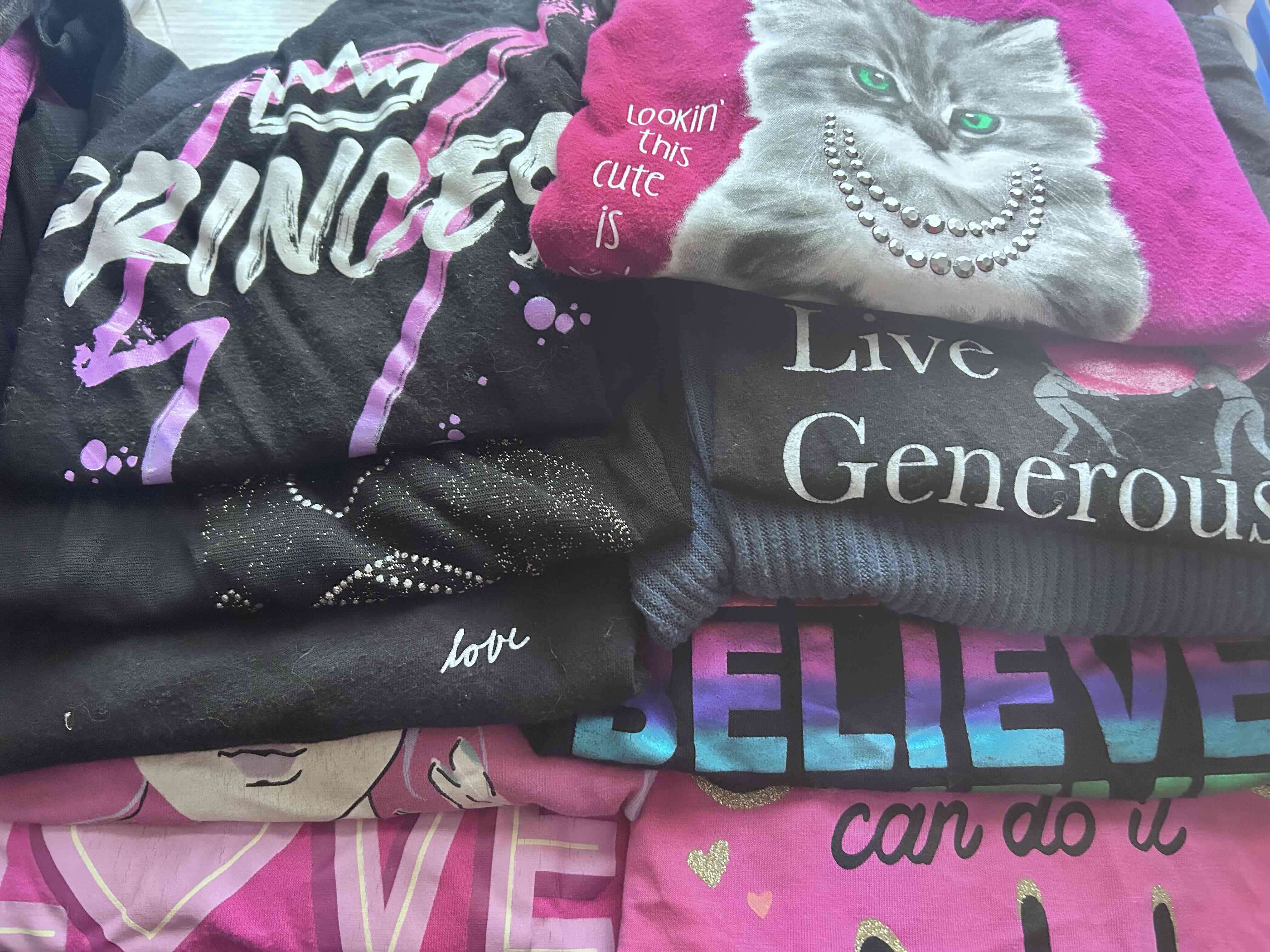 Poleras manga larga, cortas y buzo de plush Tallas 10 y talla 12 Todo en muy buen estado Pack de 18 prendas: $6.000
