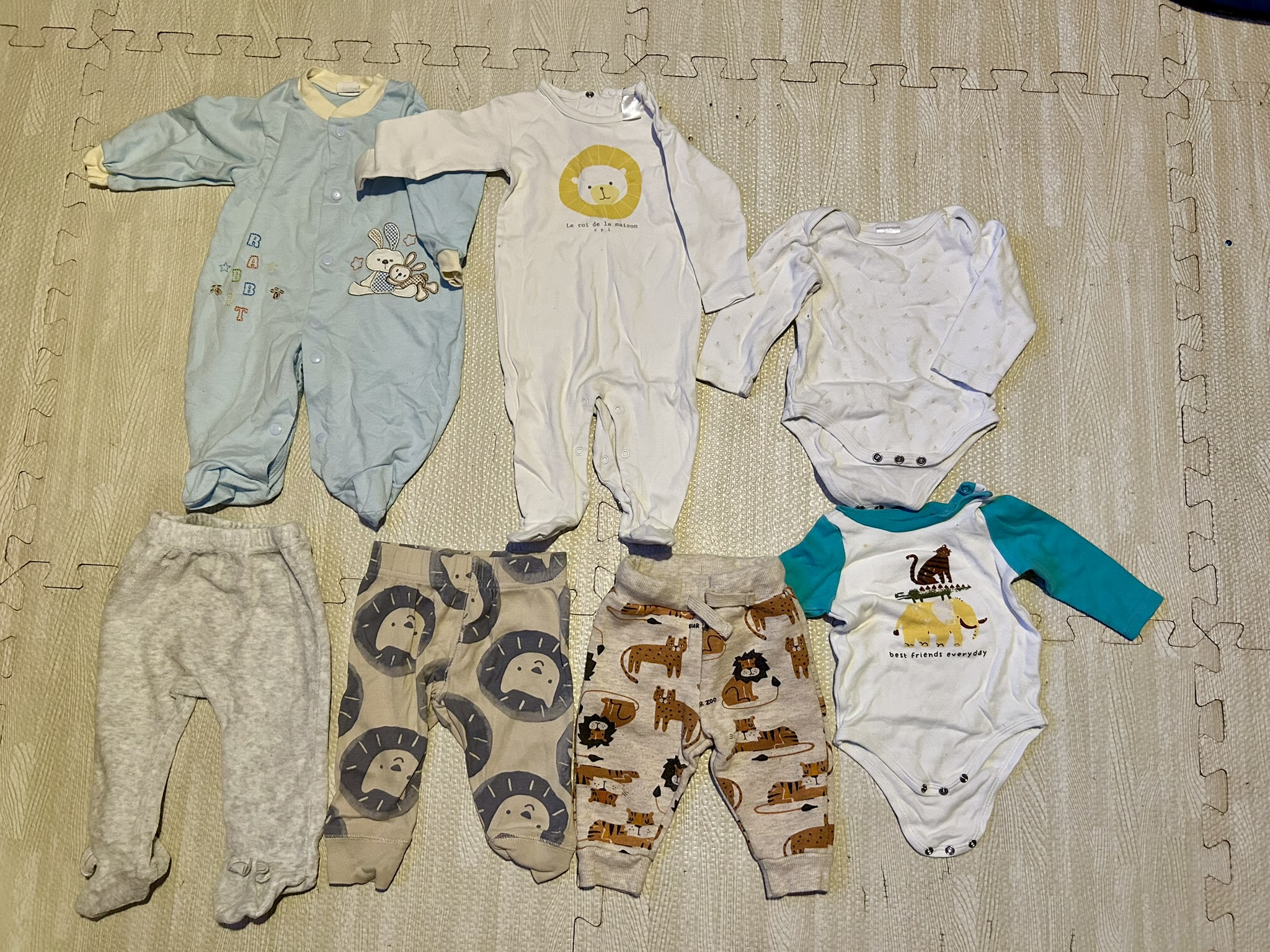 Conjunto de 16 prendas de ropa de bebé con diseños de animalitos, en buen estado, ideal para el uso diario.