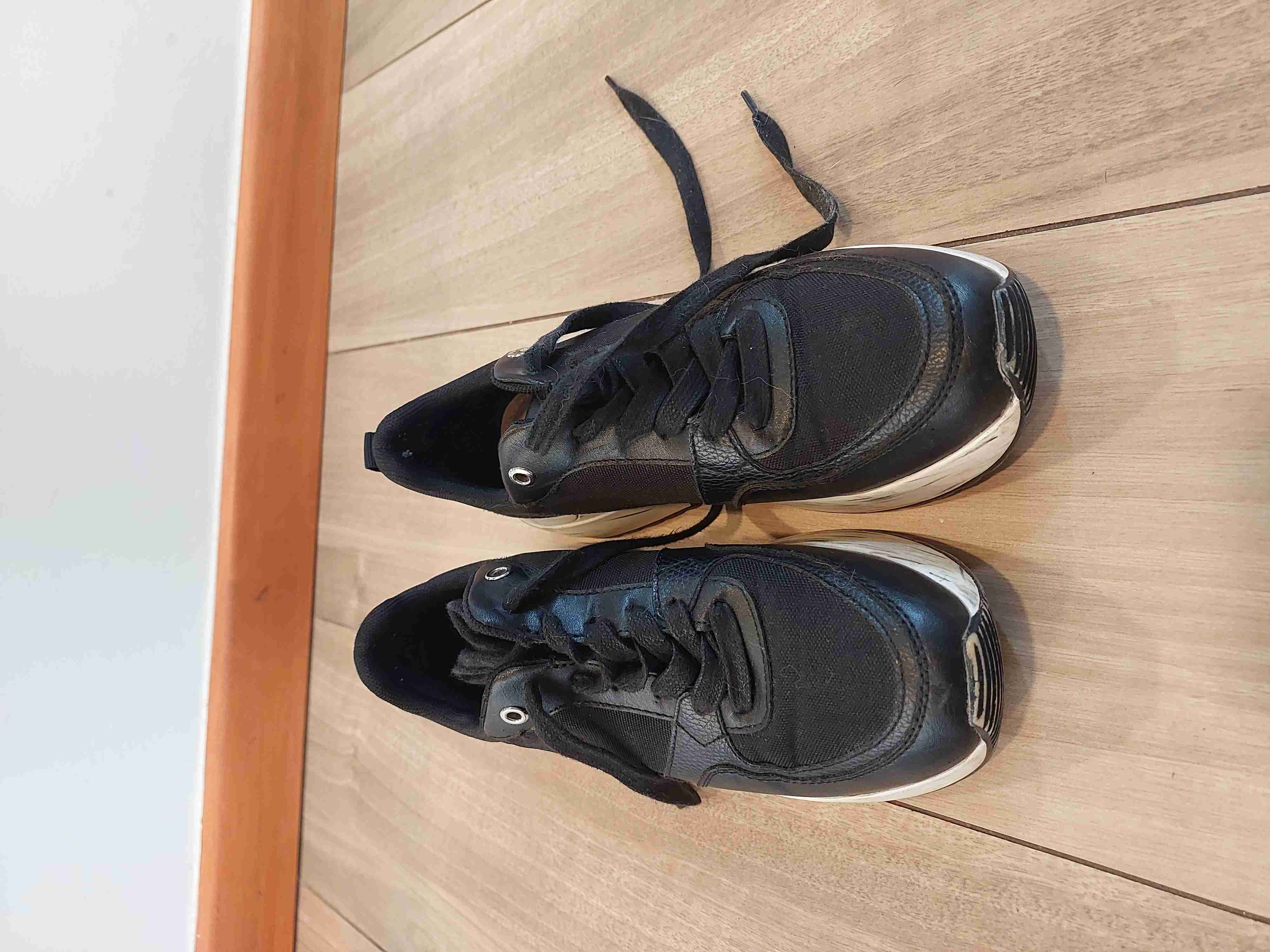 Zapatillas negras, estilo casual y deportivo. Buen estado con signos ligeros de uso.