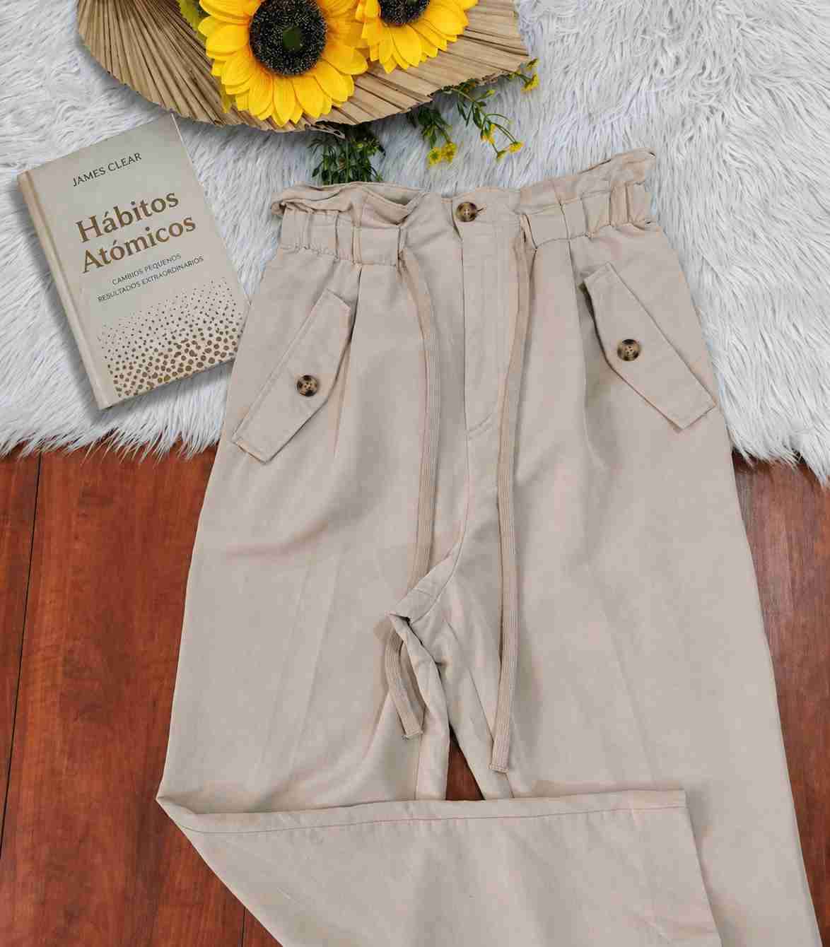 Elegante pantalón beige con bolsillos grandes. Ideal para un look casual y cómodo. Nuevo, detalle moderno y práctico.