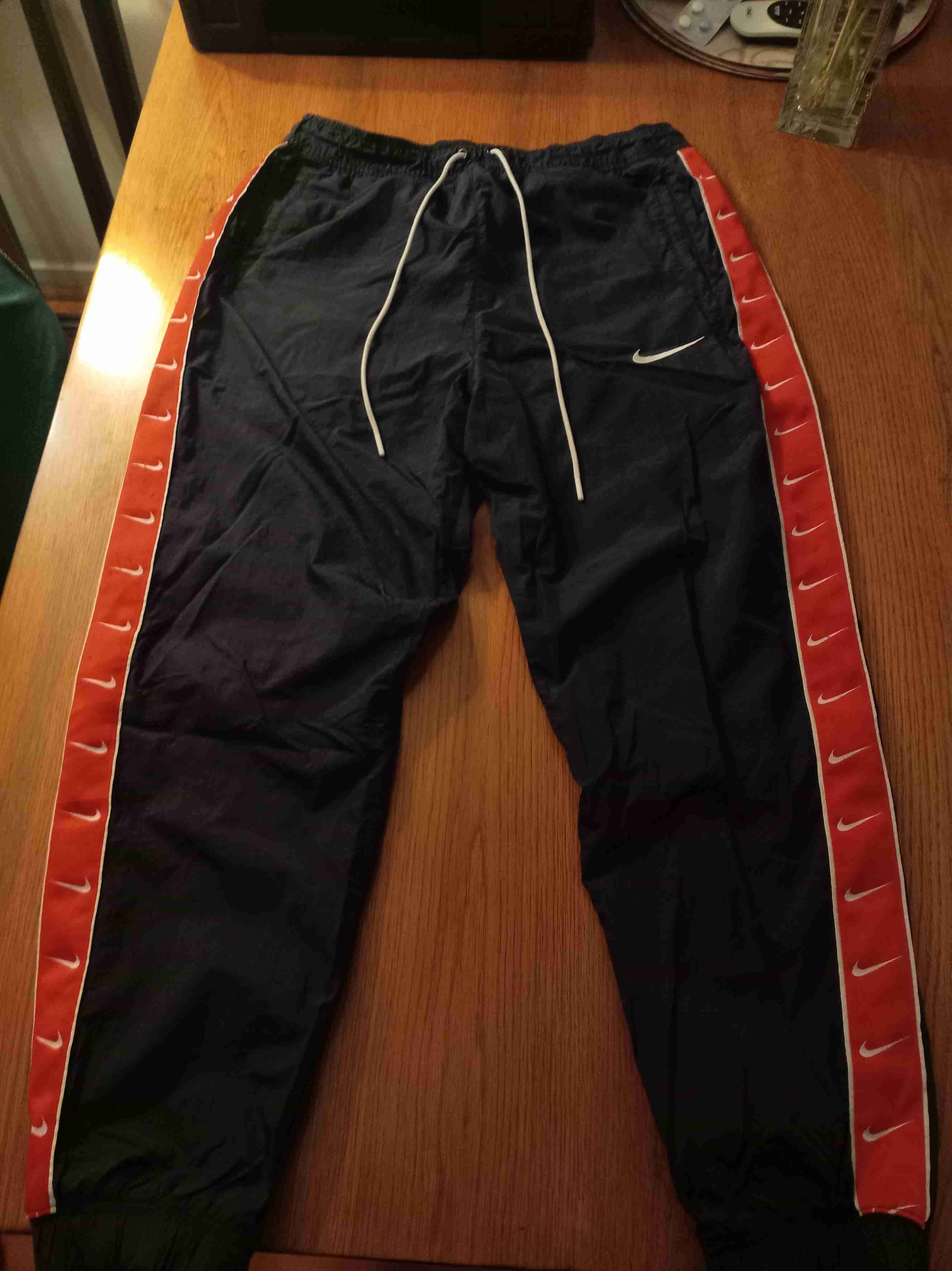 Pantalón deportivo azul con detalles rojos y logo nike visible en el lateral. Ideal para uso casual o deportivo. En buen estado.
