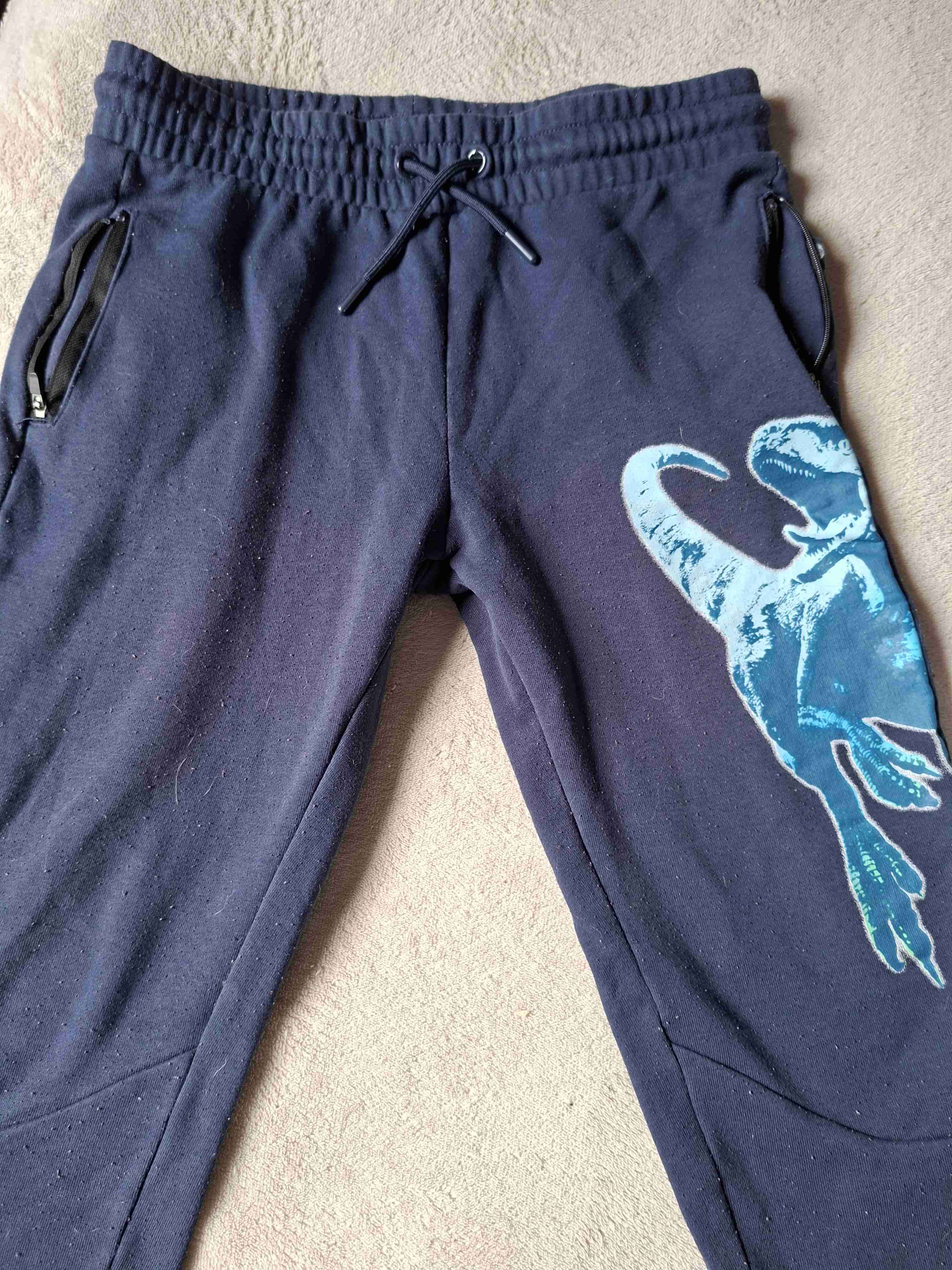 Pantalón deportivo azul con diseño de dinosaurio en la pierna. Ideal para actividades casuales. Buen estado lo uso varias veces pero no tiene rotos ni costuras dañadas talla 12