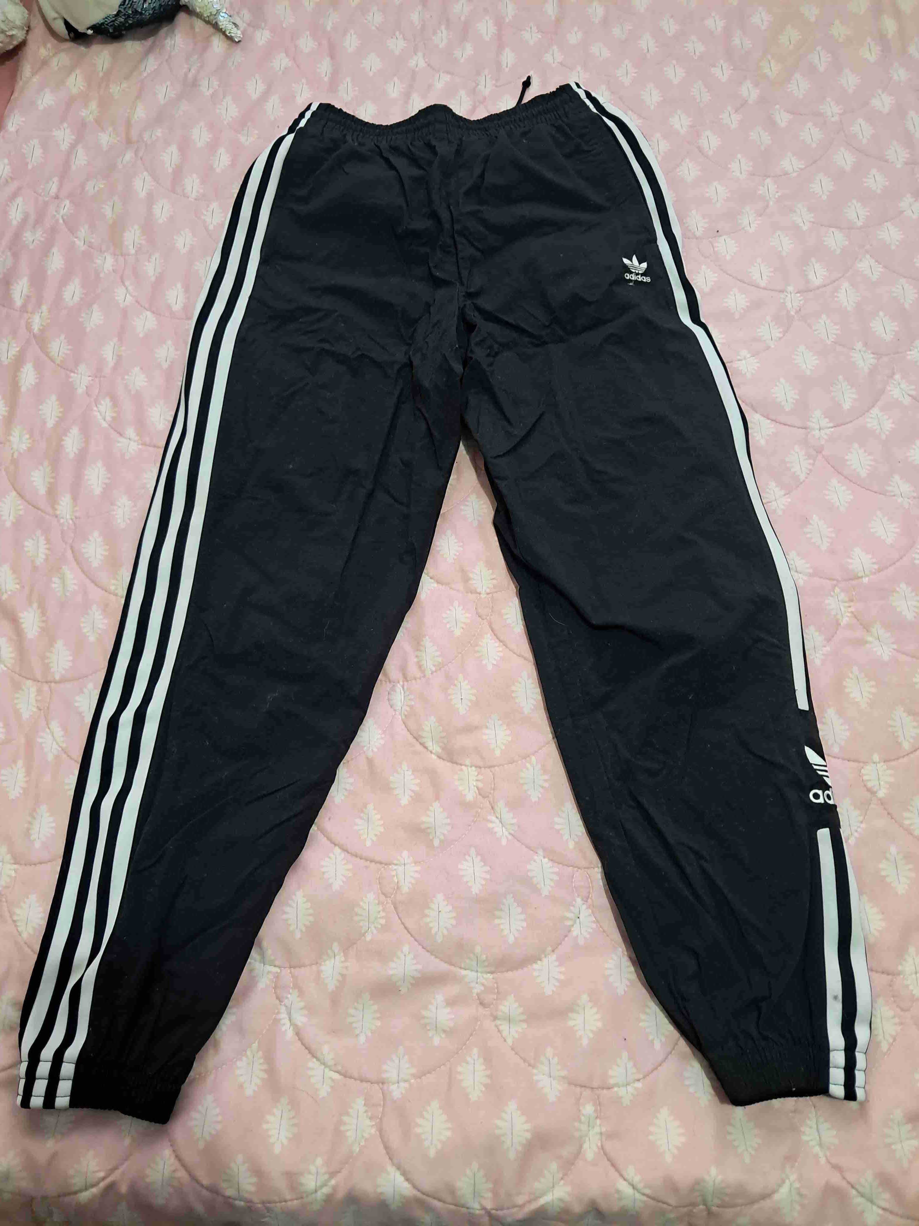 Pantalón deportivo negro con rayas blancas, ideal para entrenar o uso casual. Estado 10 de 10. No tiene más de 3 usos. Tiene una pequeña manchita negra en una de las rayitas de la pierna, que sale con el lavado. Talla S es como 36-38 de mujer