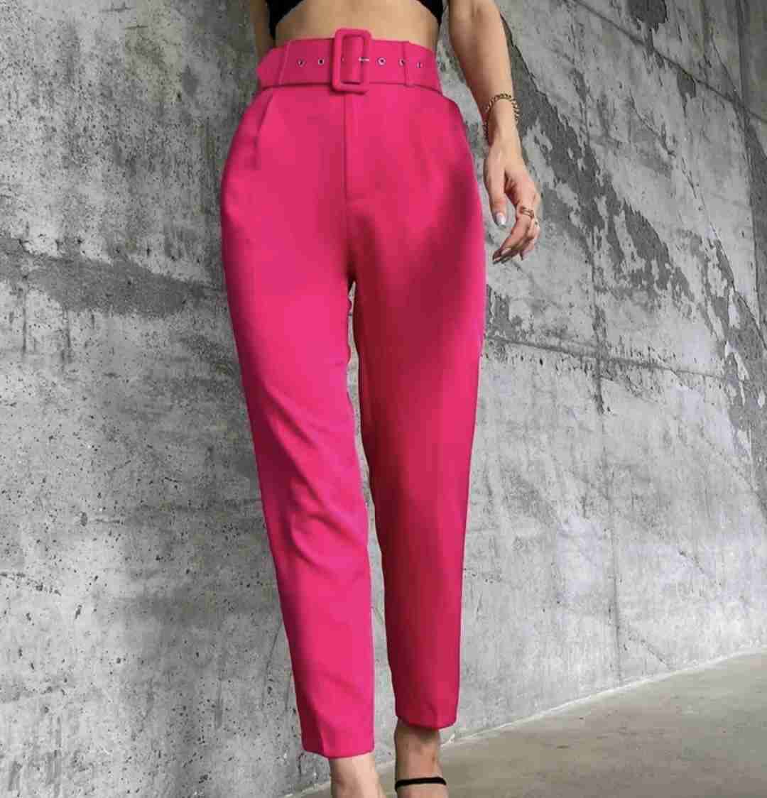 Pantalones estilo chic con cinturón a juego, en color fucsia vibrante. Perfectos para un look moderno y audaz. Nuevo, talla M. Cintura: 72cm Caderas: 100cm Largo: 100cm
