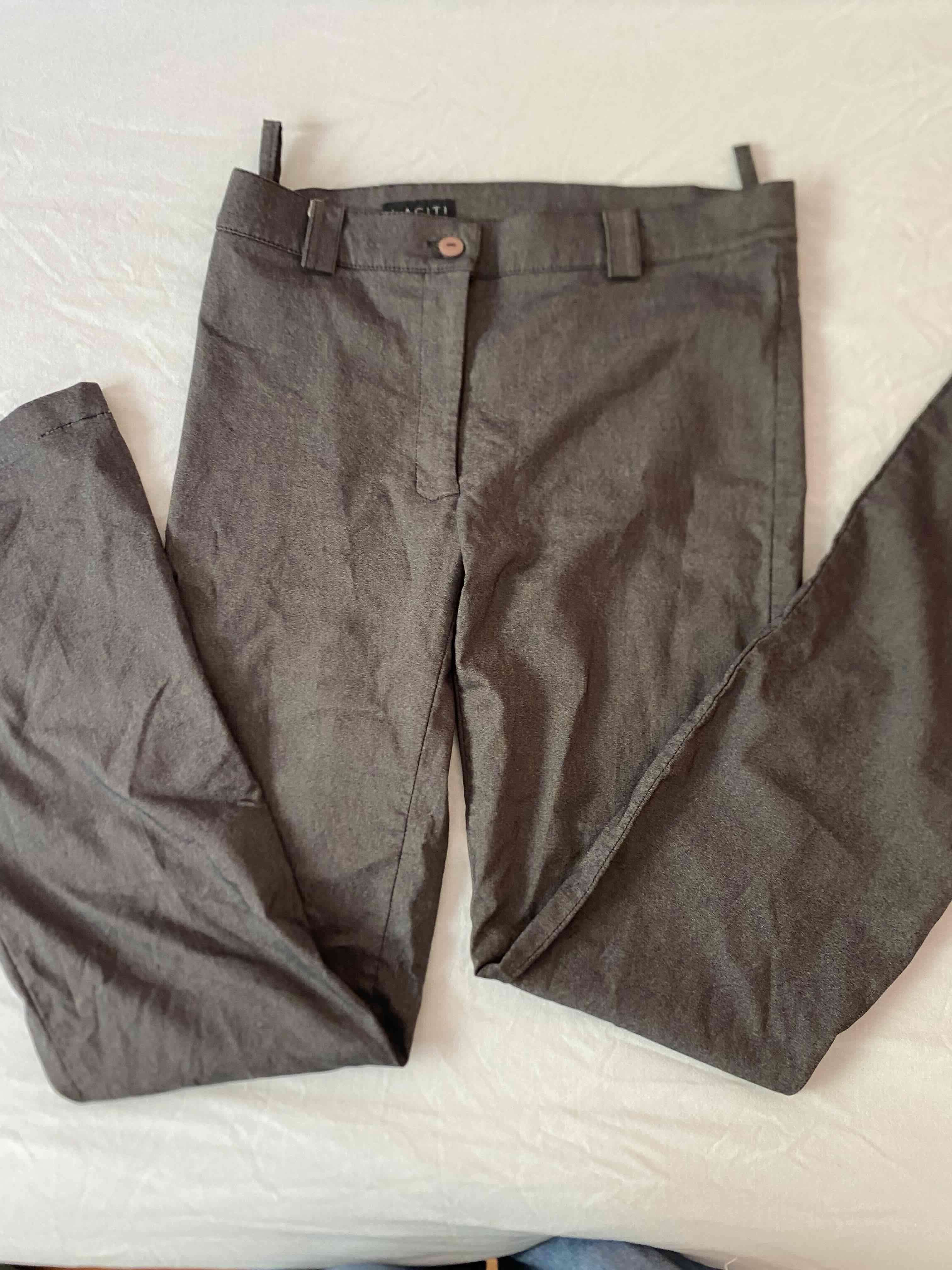 Pantalón de vestir color gris en buen estado, ideal para ocasiones formales. Tela suave y cierre frontal.